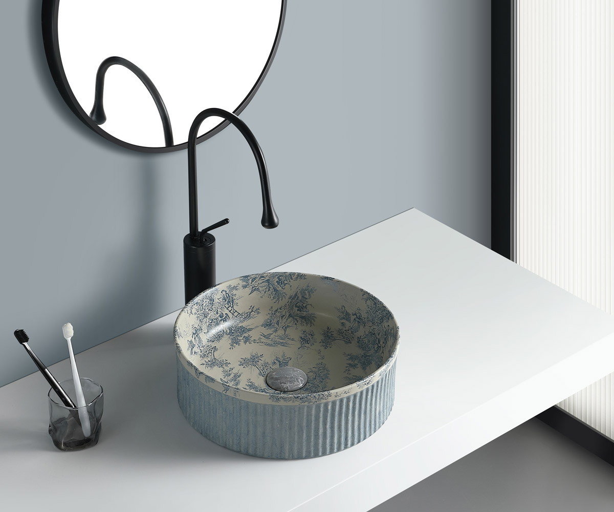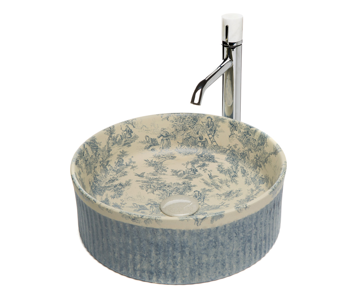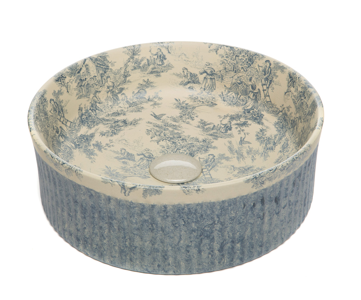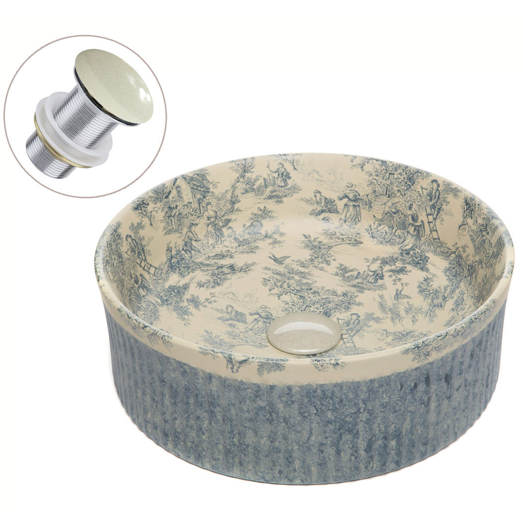 Накладная раковина Bronze de Luxe Брюссе 36,5 см голубой с донным клапаном 4116