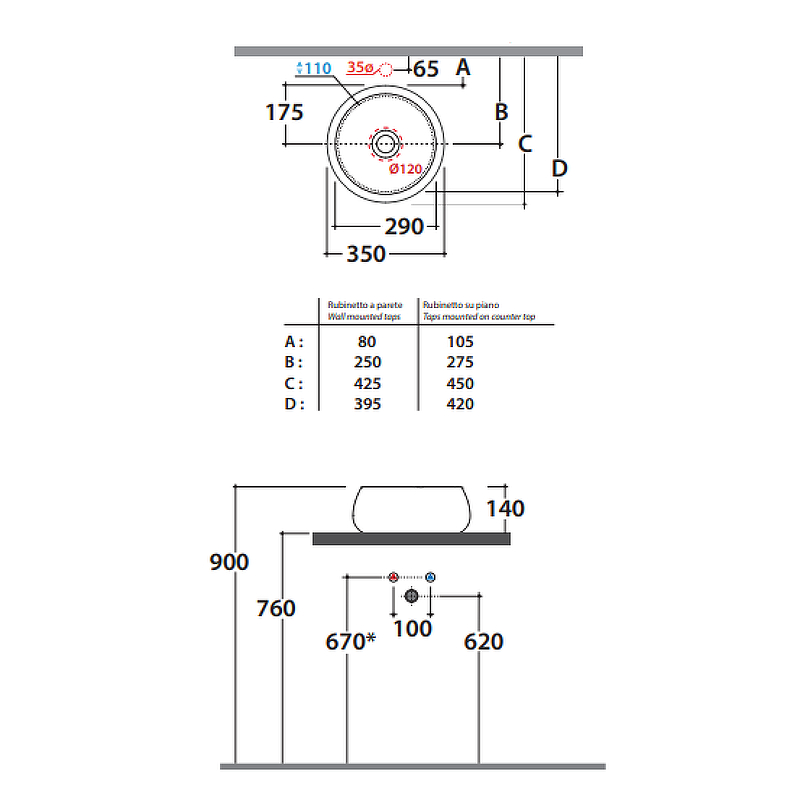 | Монтаж | На столешницу/ тумбу |