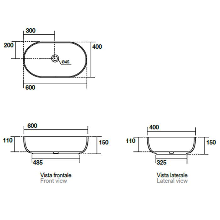 Накладная раковина Kerasan Nolita 60х40 см Ferro matt 534389