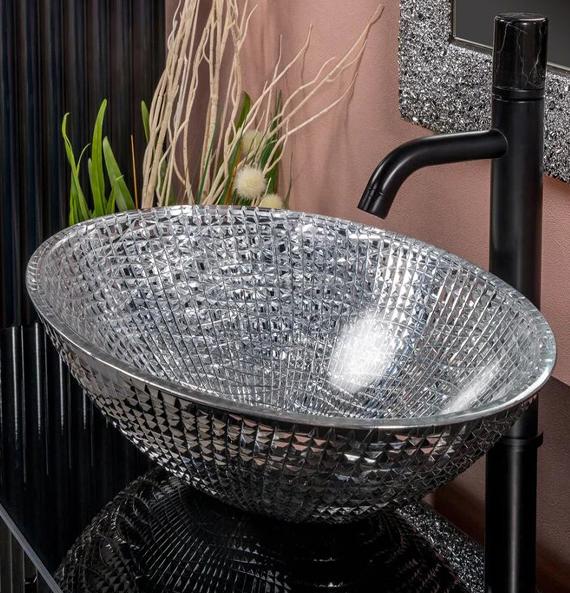 Накладная раковина хрустальная Boheme 51х34,5 см серебро 815