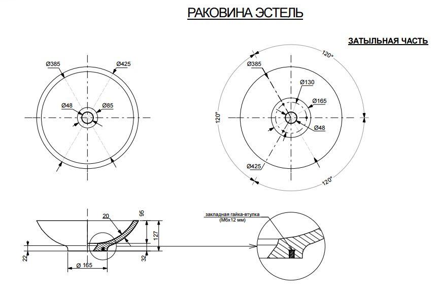 Раковина из литьевого мрамора Эстет Эстель 42,5 см белый глянец ФР-00001461