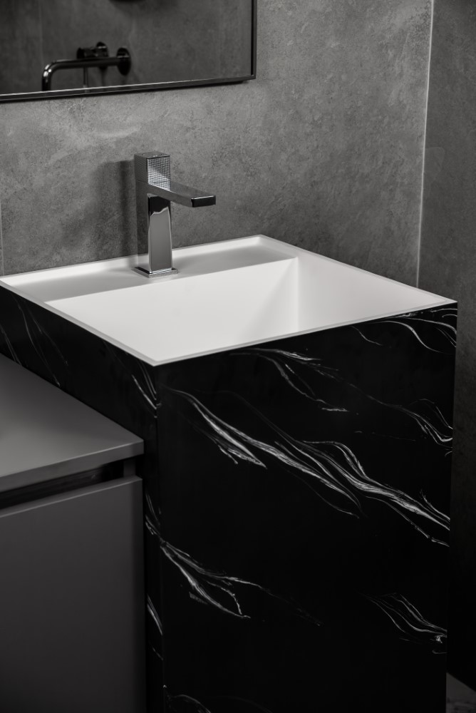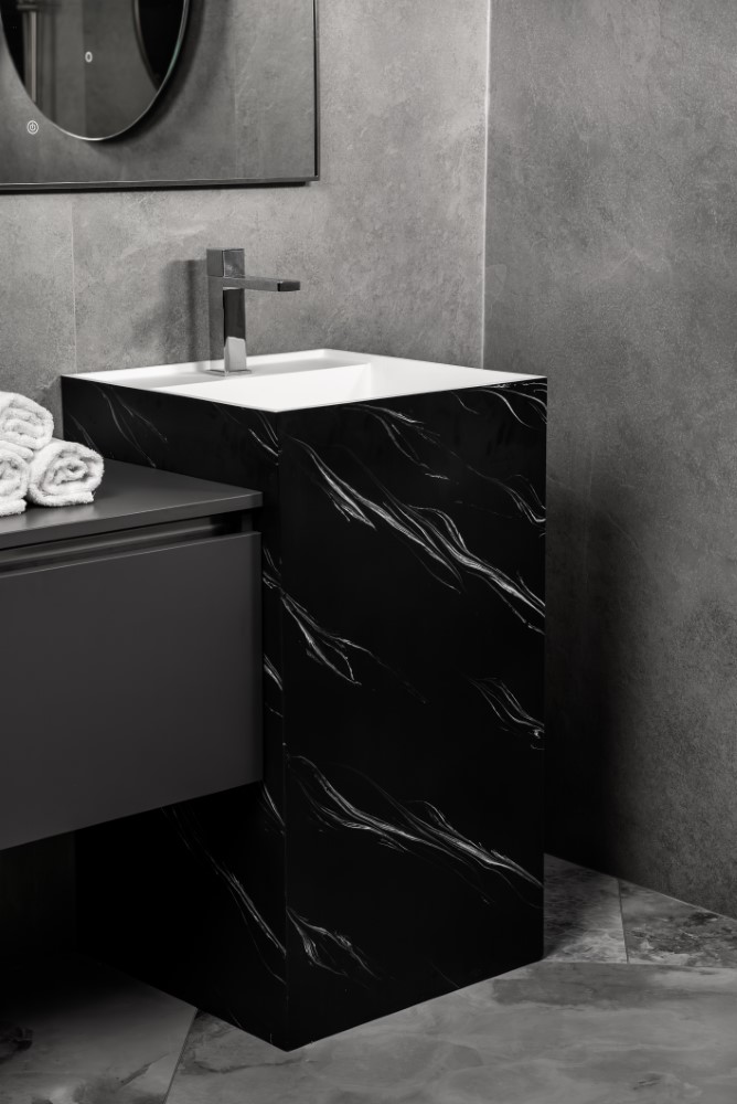 Раковина напольная Armadi Art/ Boheme Cube Corian 48 см черный мрамор 802-NM
