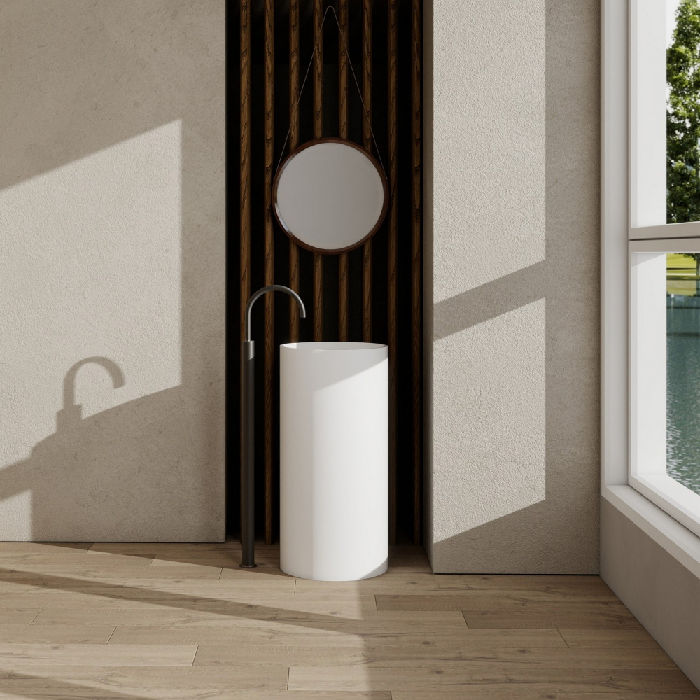 - Раковина напольная иск камень Abber Stein 40х85 см белый матовый AS2516-H