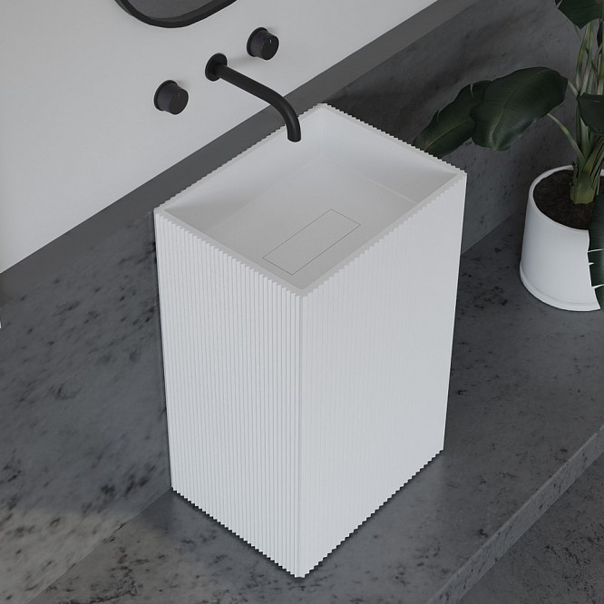 - Раковина напольная иск камень Abber Stein 50х85 см белый матовый AS2503-H