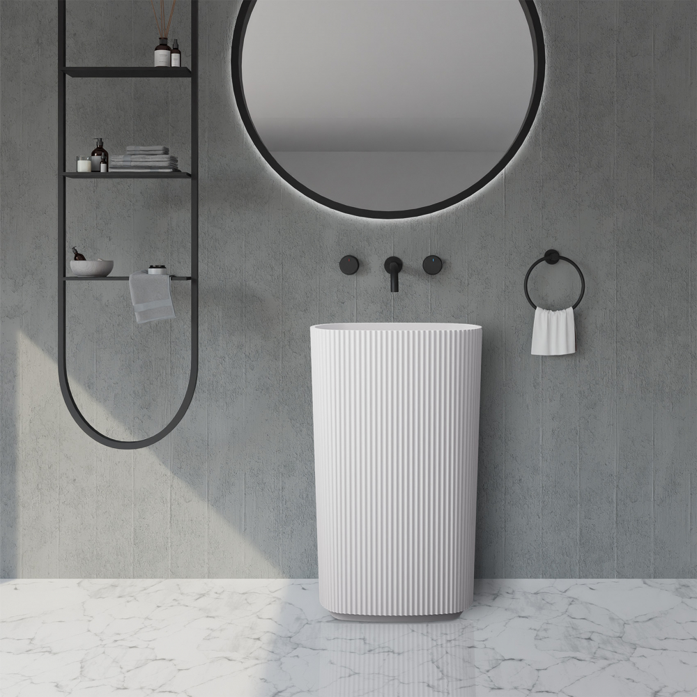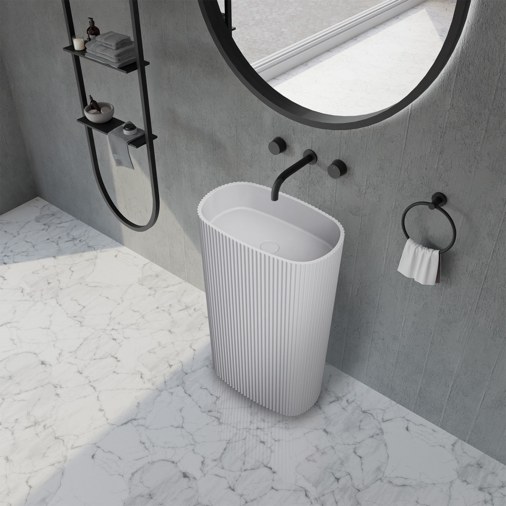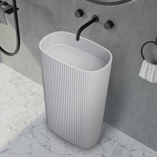 - Раковина напольная иск камень Abber Stein 55х85 см белый матовый AS2502-H