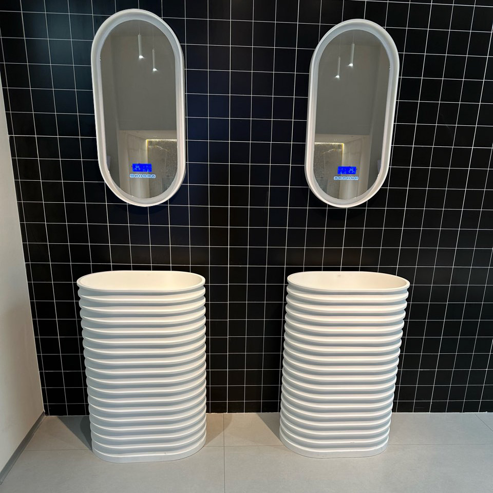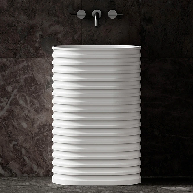 - Раковина напольная иск камень Abber Stein 58х87 см белый матовый AS2550