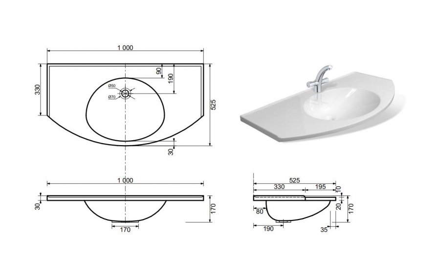 | Отверстие под смеситель | 1 |