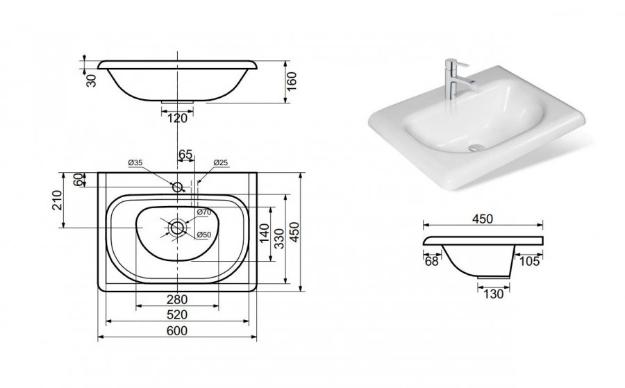 | Отверстие под смеситель | 1 |