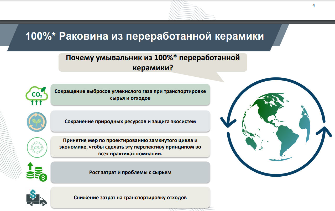 Это не просто высококачественная раковина, это - доказательство стремления VitrA использовать меньше ресурсов, максимально сокращать отходы производства и увеличивать свой вклад в построение экономики замкнутого цикла. Vitra эффективно внедряет принципы экономики замкнутого цикла, снижая свое воздействие на окружающую среду и глобальное потепление на 30 процентов при выпуске каждого продукта, а также превращающая отходы в ценный ресурс. При изготовлении раковины используются исключительно бой и отбракованная керамика, а также другие отходы производства, обычно попадающие на свалку.