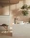 Цвет, который будет использоваться в умывальнике из переработанного материала, немного ярче, чем матовый тауп. Он также имеет натуральную поверхность. Его определенно можно сочетать с продуктами матового тауп цвета из разных группах продуктов.
