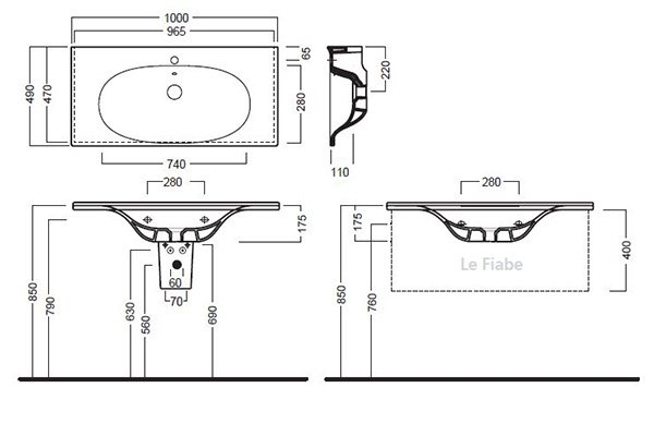 Раковина подвесная/встраиваемая Hatria Le Fiabe 100см Y1BQ01