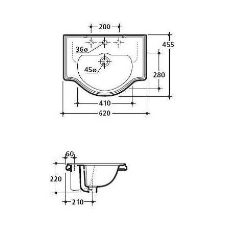 Встраиваемая раковина Kerasan Retro 62 см 103001*1