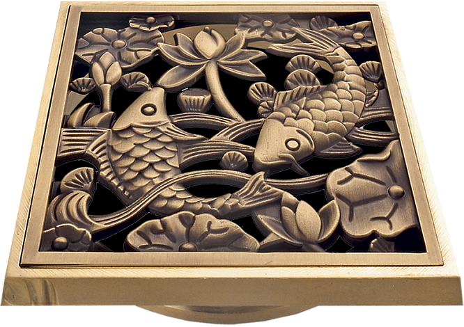 Дизайн-решетка с патрубком для трапа Bronze de Luxe Рыбы 10х10 см латунь/бронза 21980