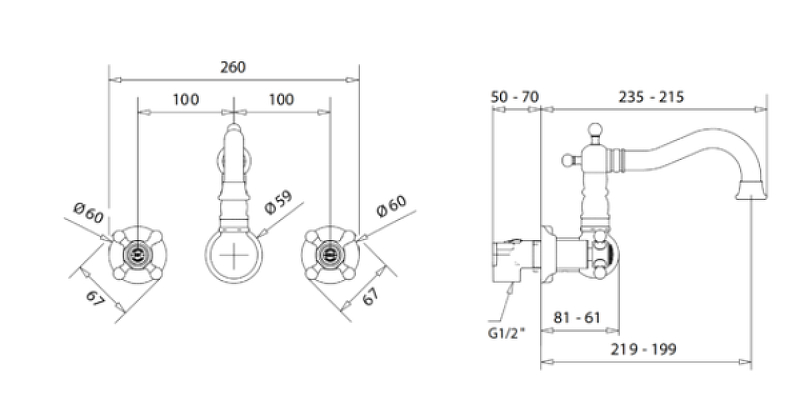 Настенный смеситель для раковины Migliore Arcadia 18381 бронза