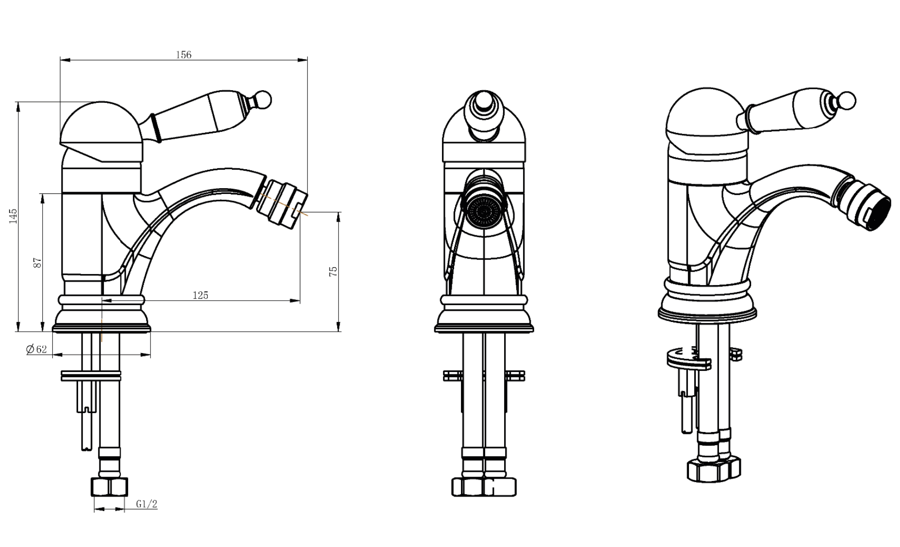 Смеситель для биде Boheme Imperiale Ripresa золото 326