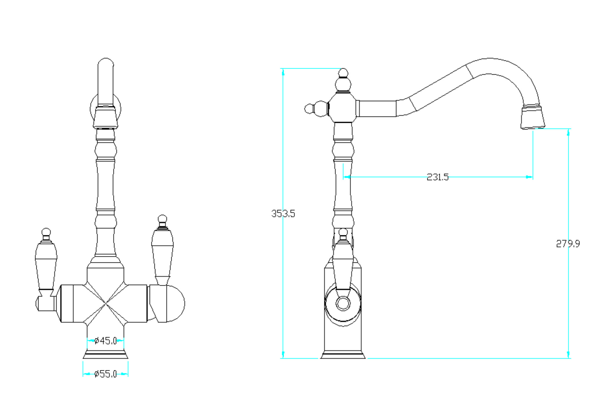 | Длина излива, см | 23,2 |