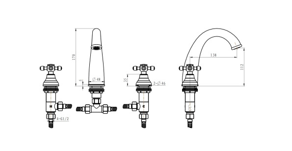 Смеситель для раковины на 3 отв Boheme Camelia золото 297-Camelia
