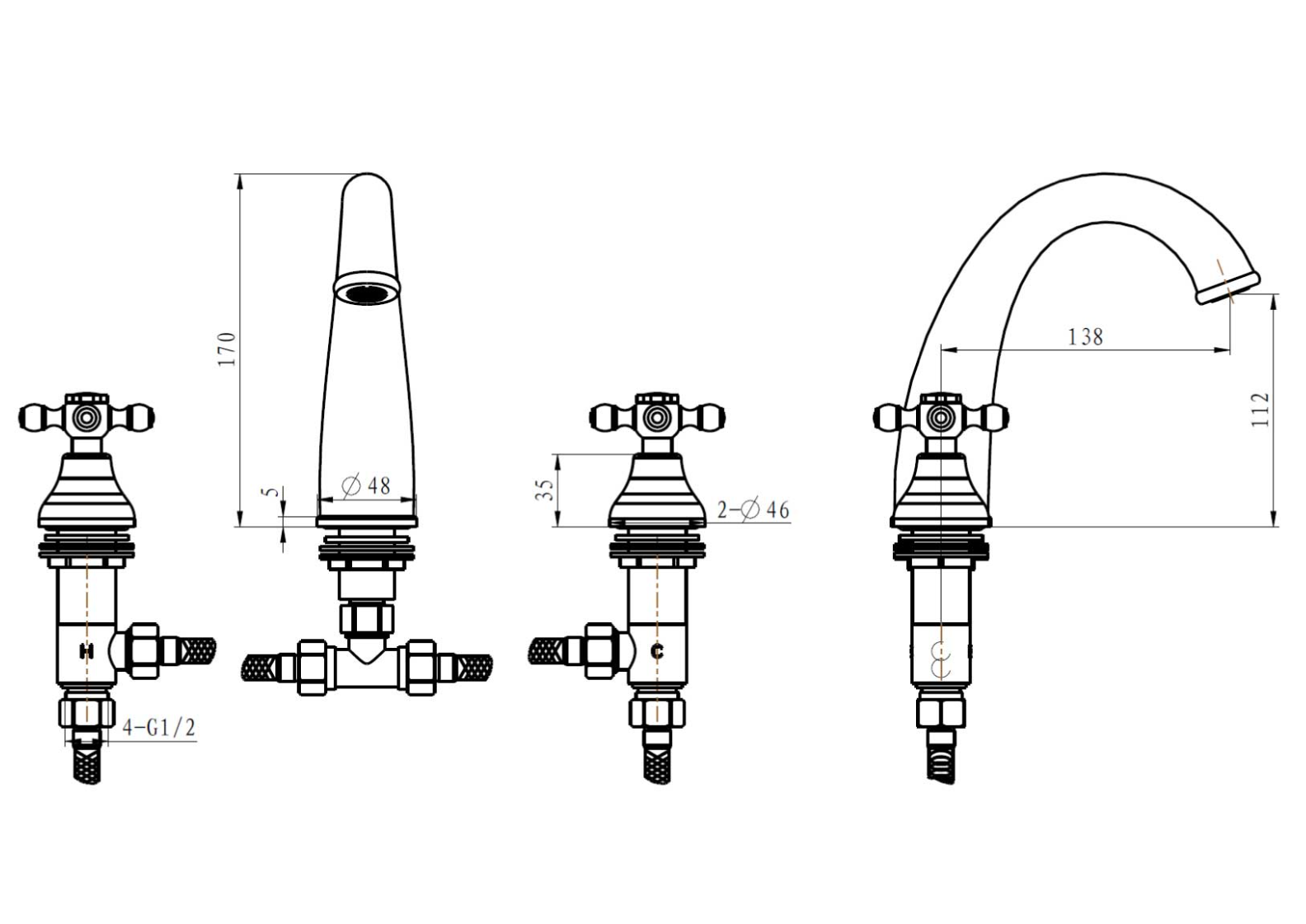 Смеситель для раковины на 3 отв Boheme Medici Presente бронза 317