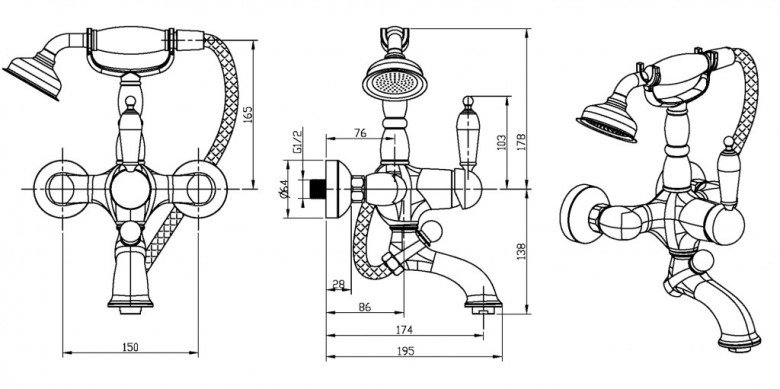 Смеситель для ванны с душем Boheme Provance Ripresa бронза 363