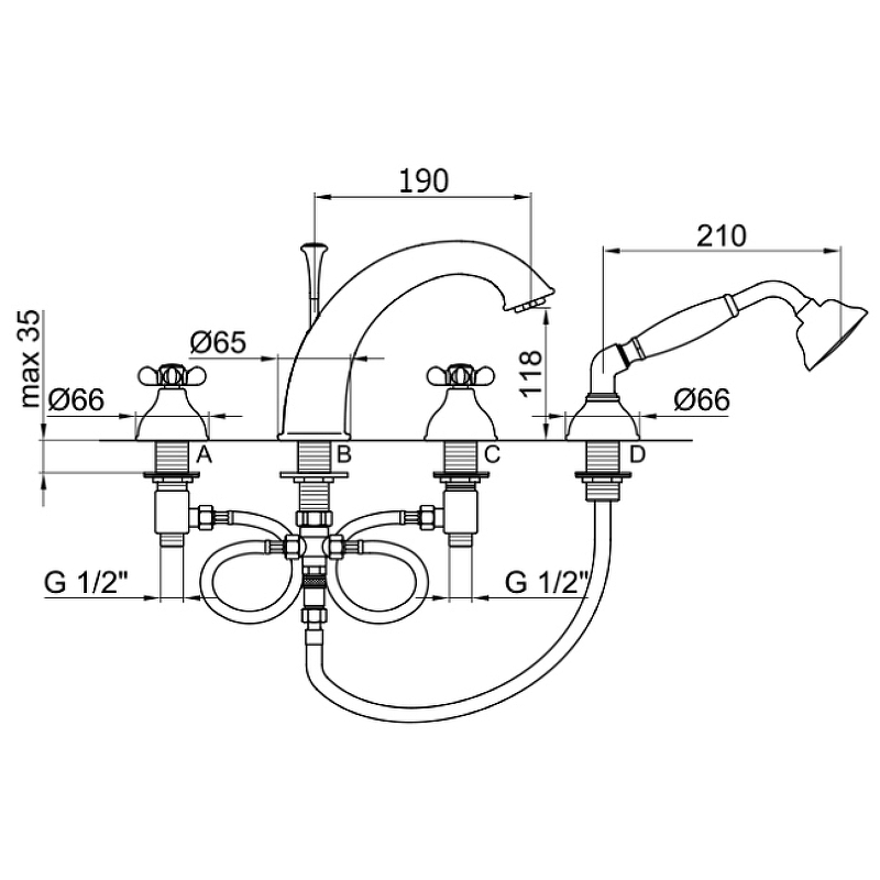 Смеситель на борт ванны Webert Ottocento бронза OT730101065