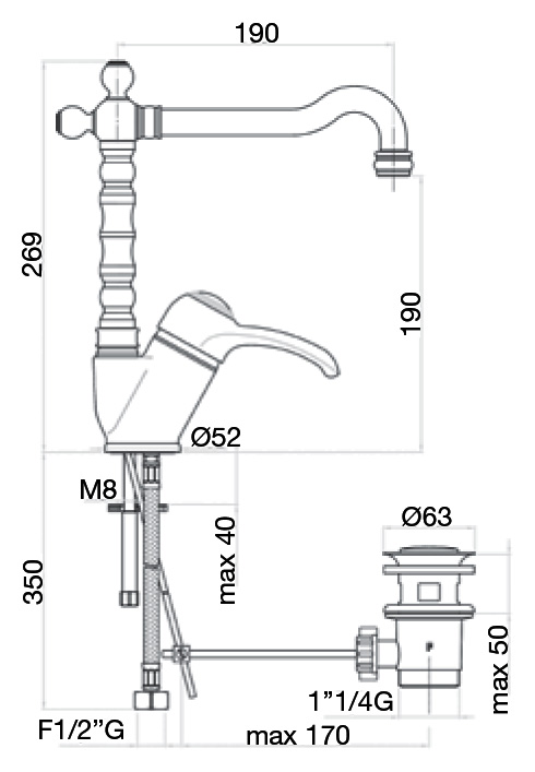 Высокий смеситель для раковины с д/к Webert Aurora хром AU831702015