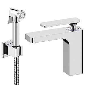 Смеситель для раковины с гигиеническим душем BelBagno Due DUE-LVM/HGN-CRM-W0