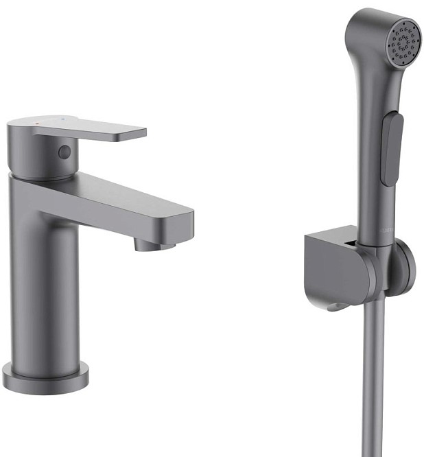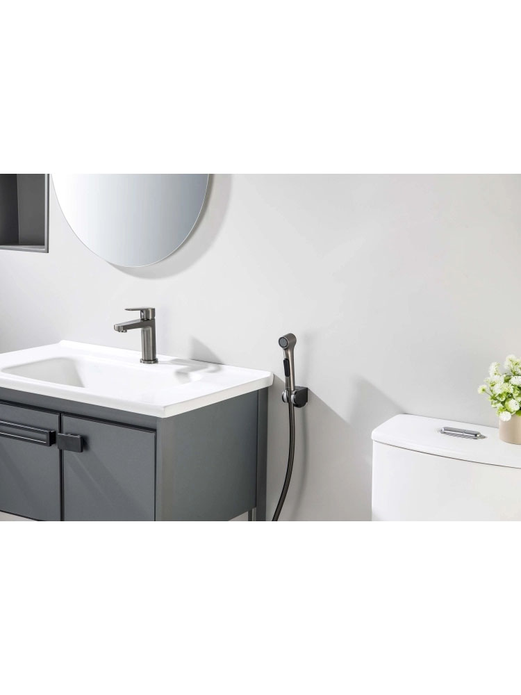 Смеситель для раковины с гигиеническим душем Акватек Лугано оружейная сталь AQ1712BGM