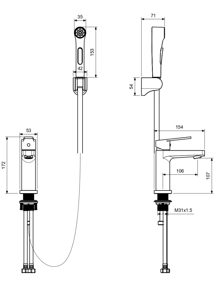| В комплекте | Гибкая подводка 60 см, шланг 150 см ПВХ, лейка пластик, настенный держатель, монтажный комплект |