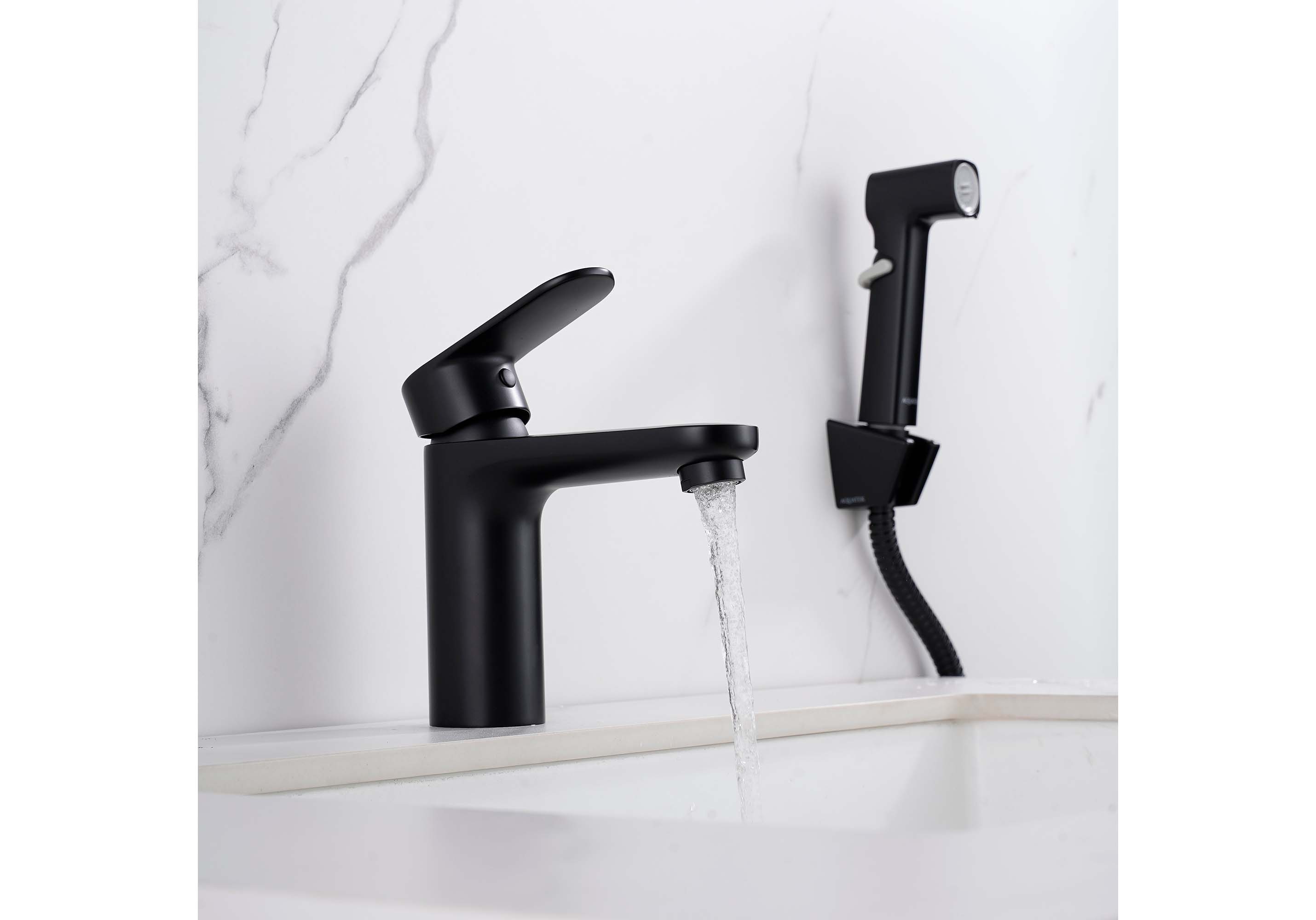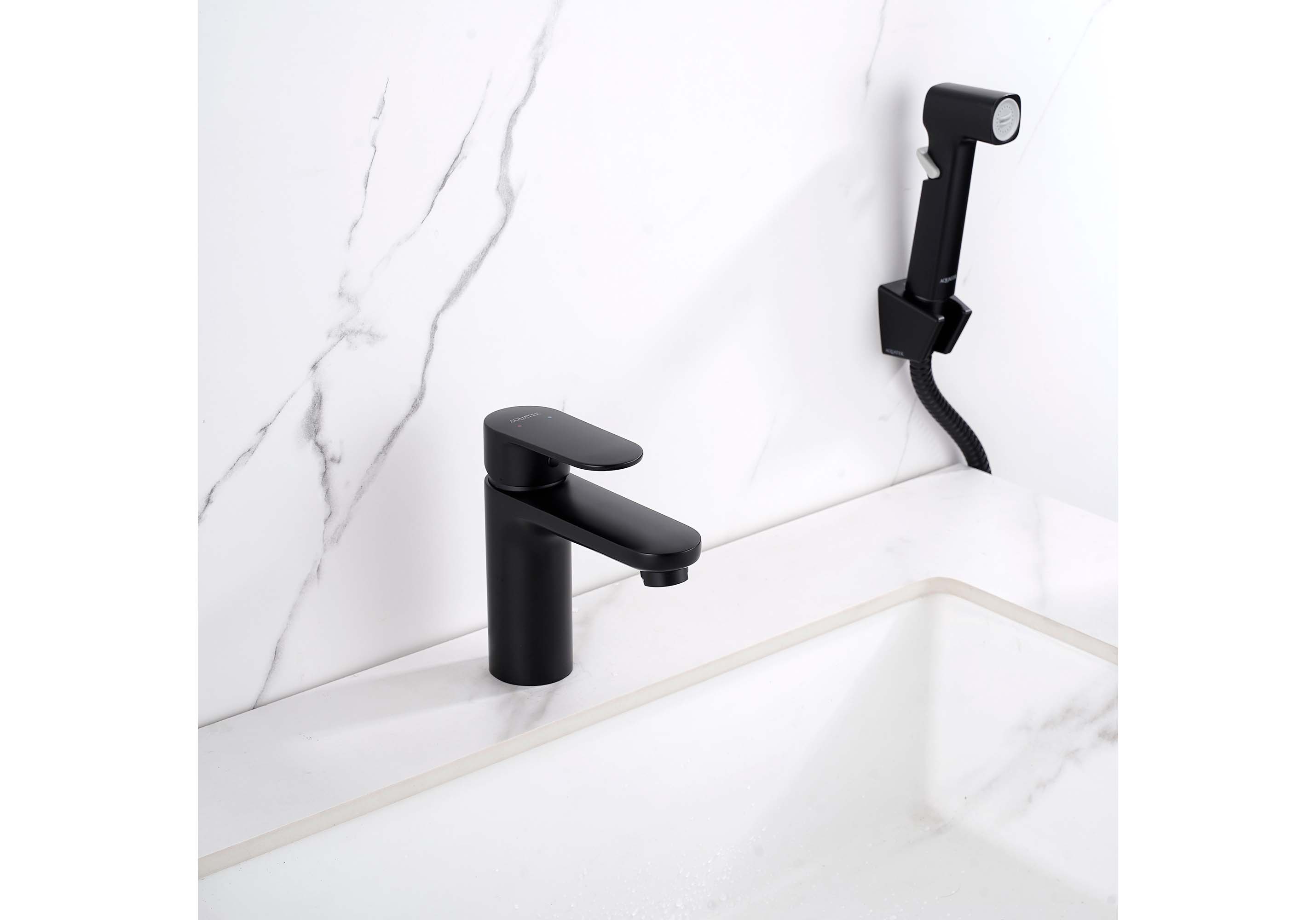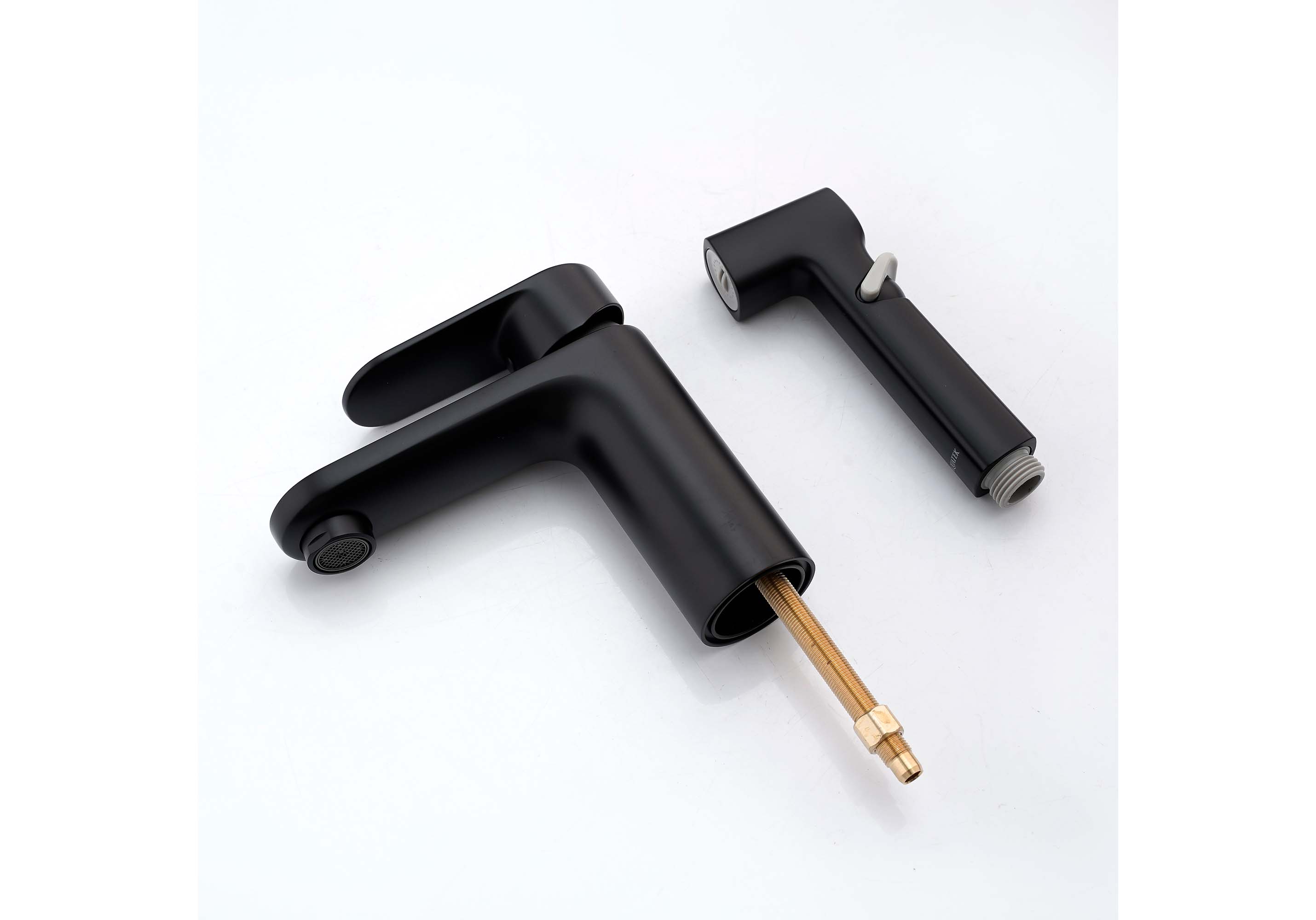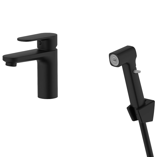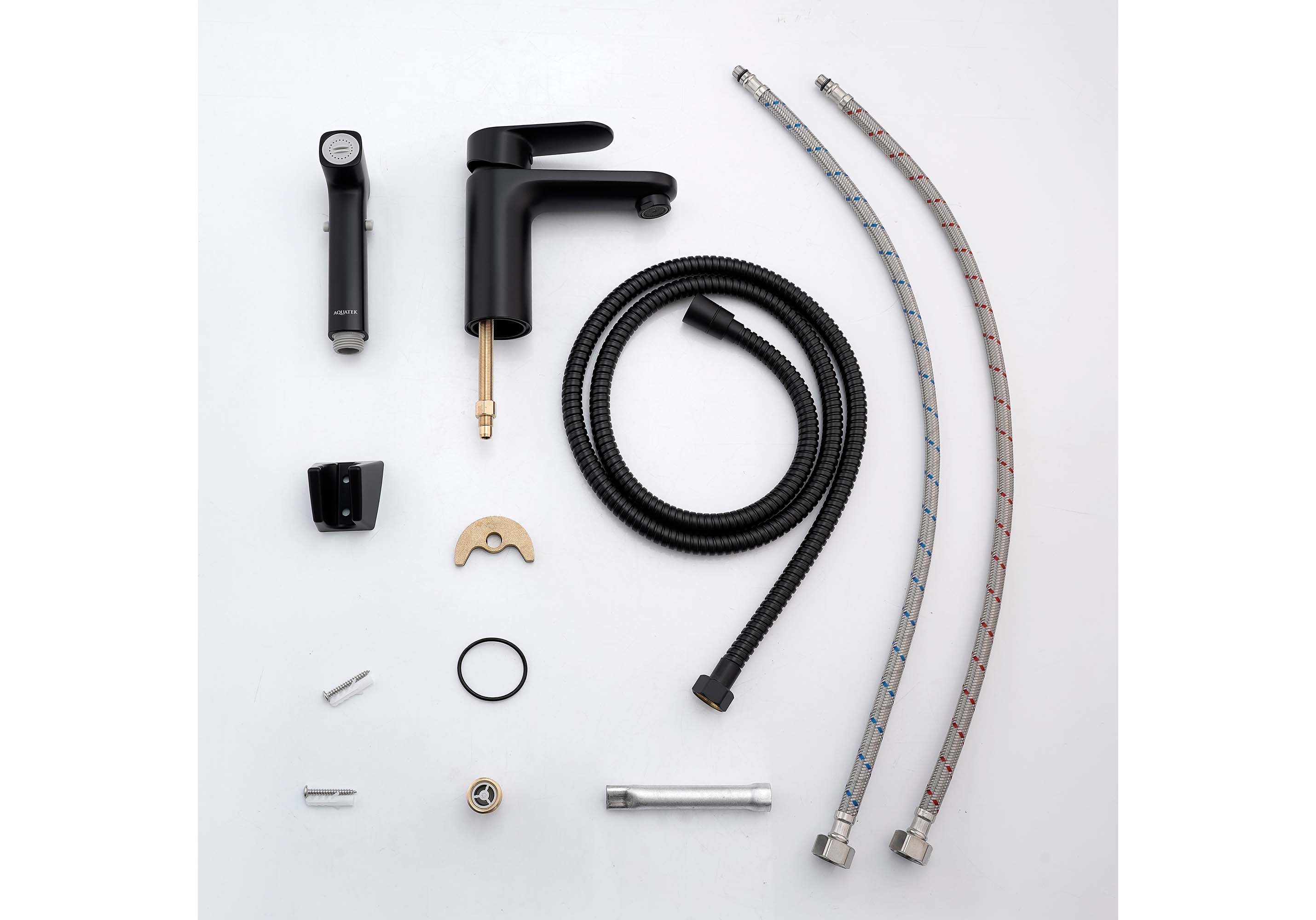 Смеситель для раковины с гигиеническим душем Акватек Ника черный матовый AQ1812MB