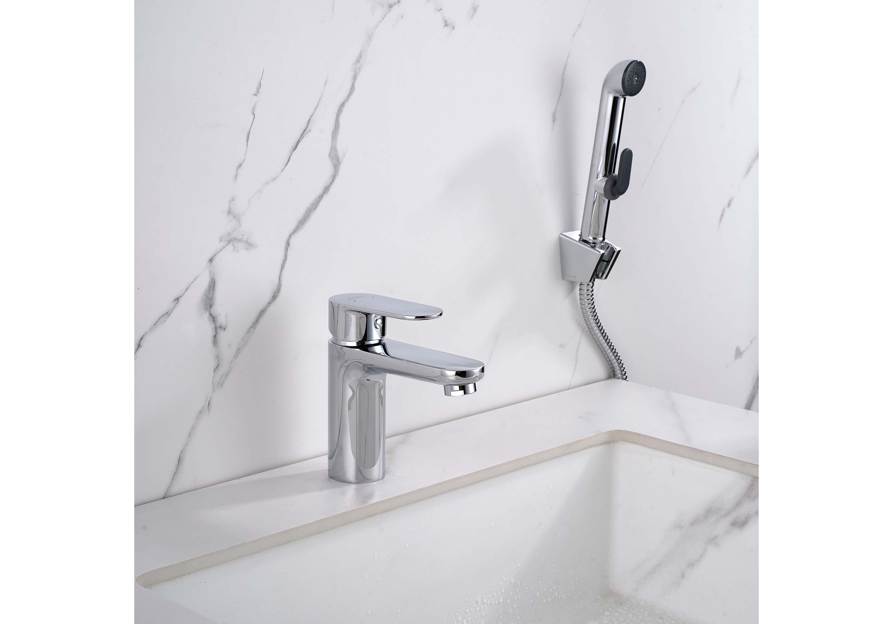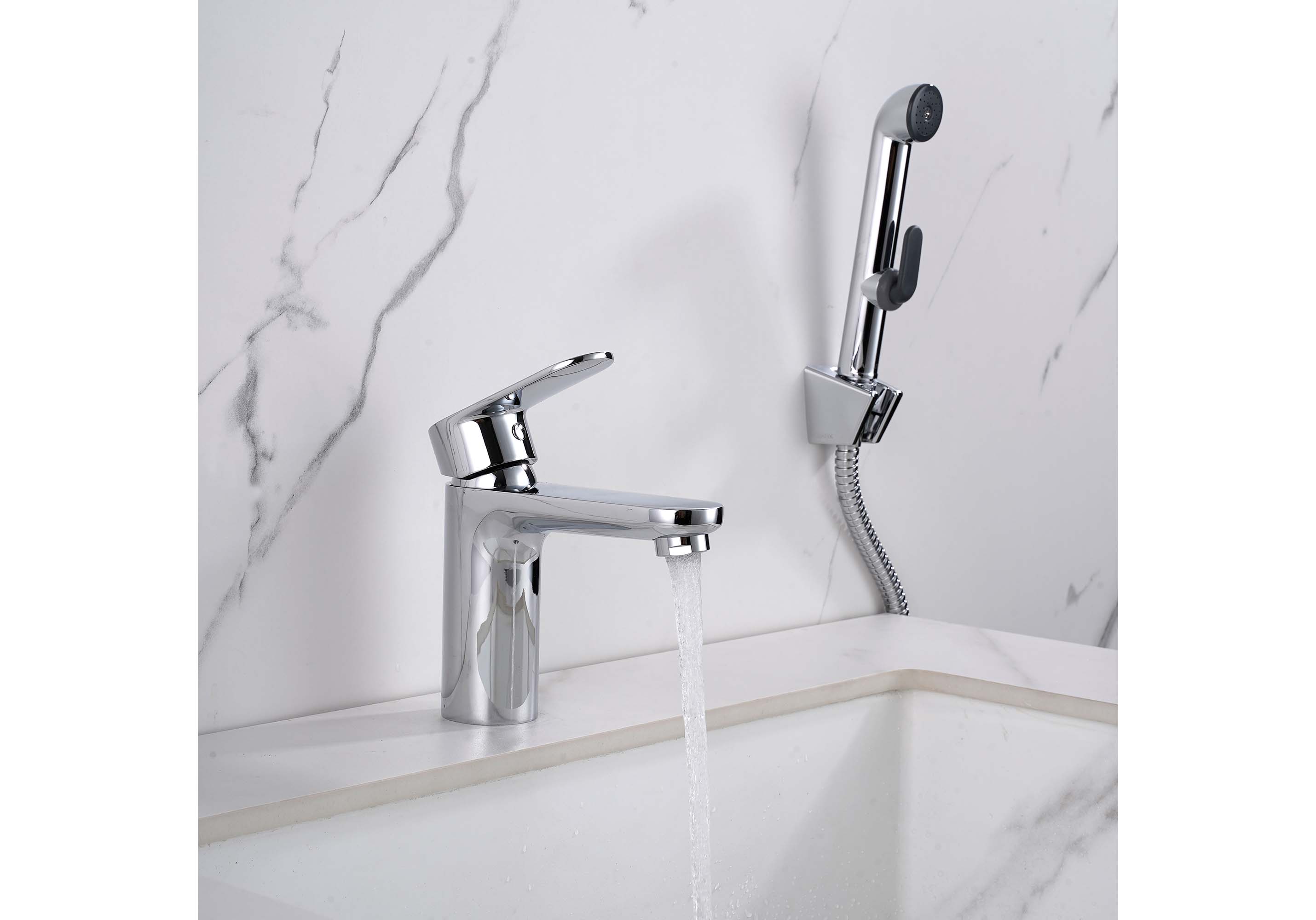 Смеситель для раковины с гигиеническим душем Акватек Ника хром AQ1812CR