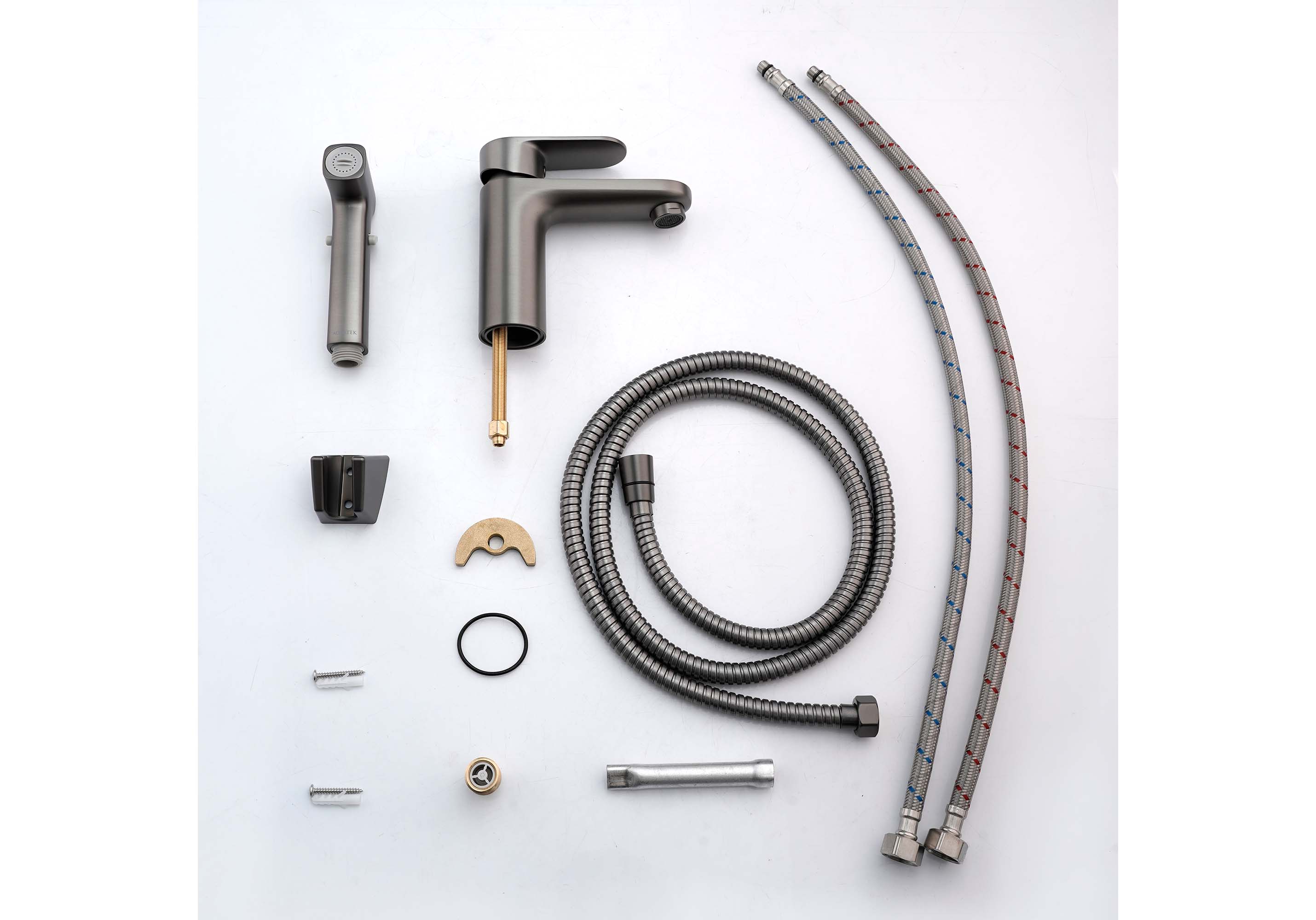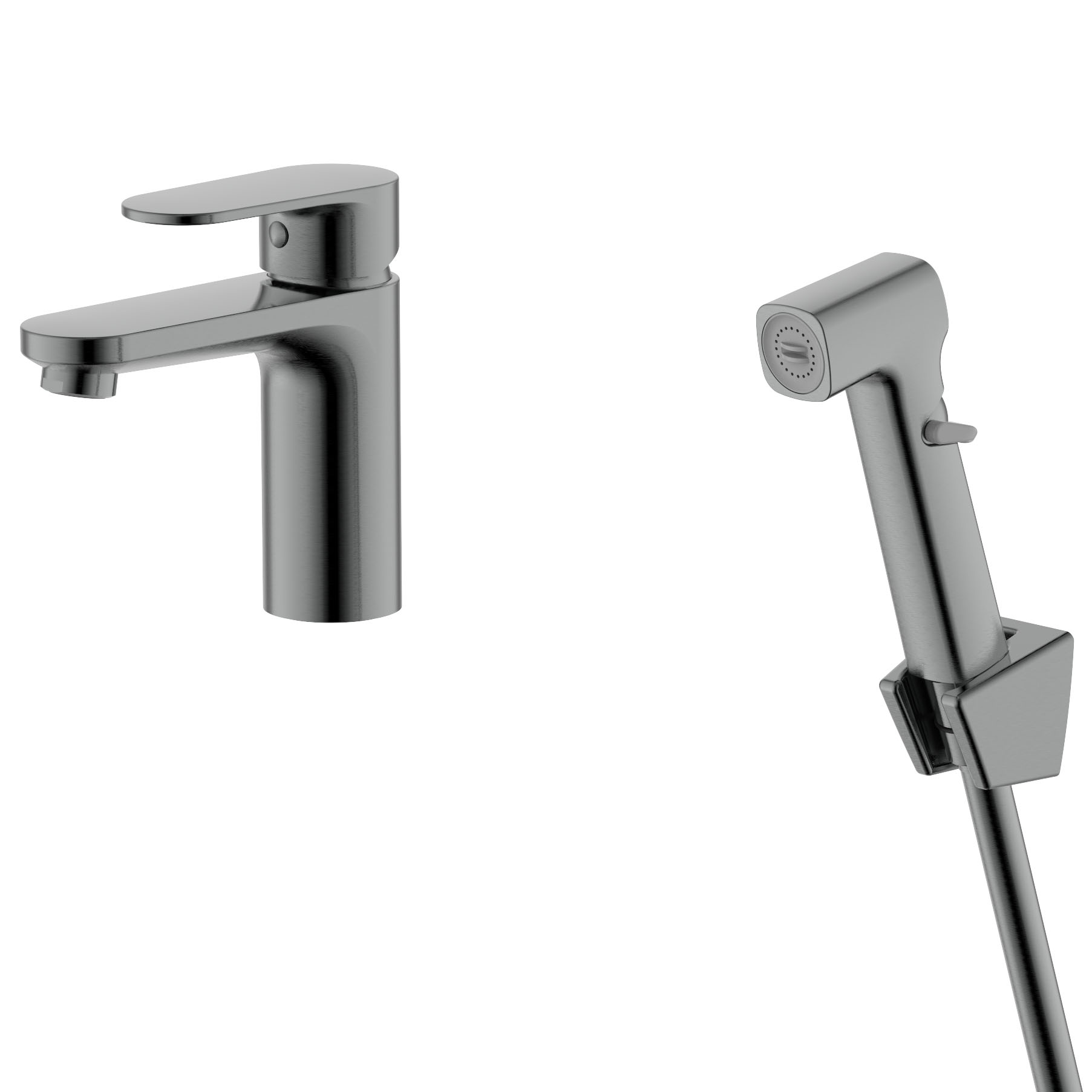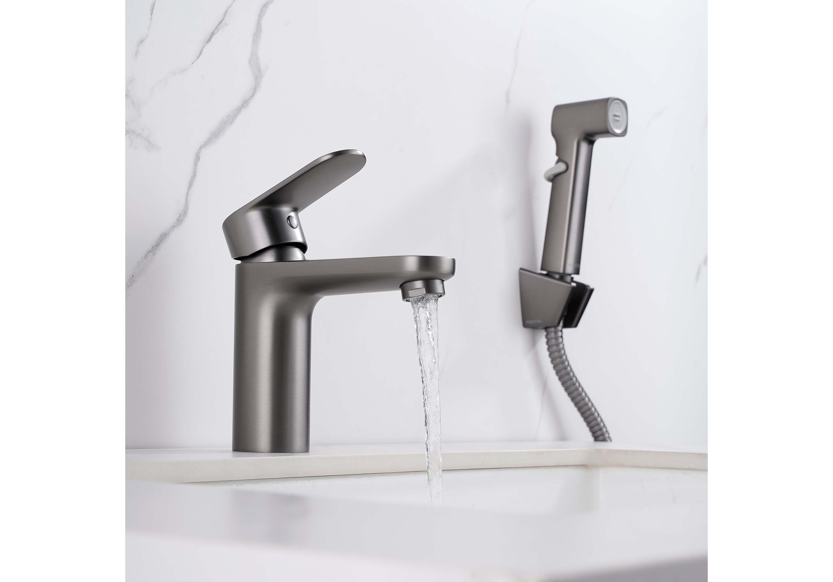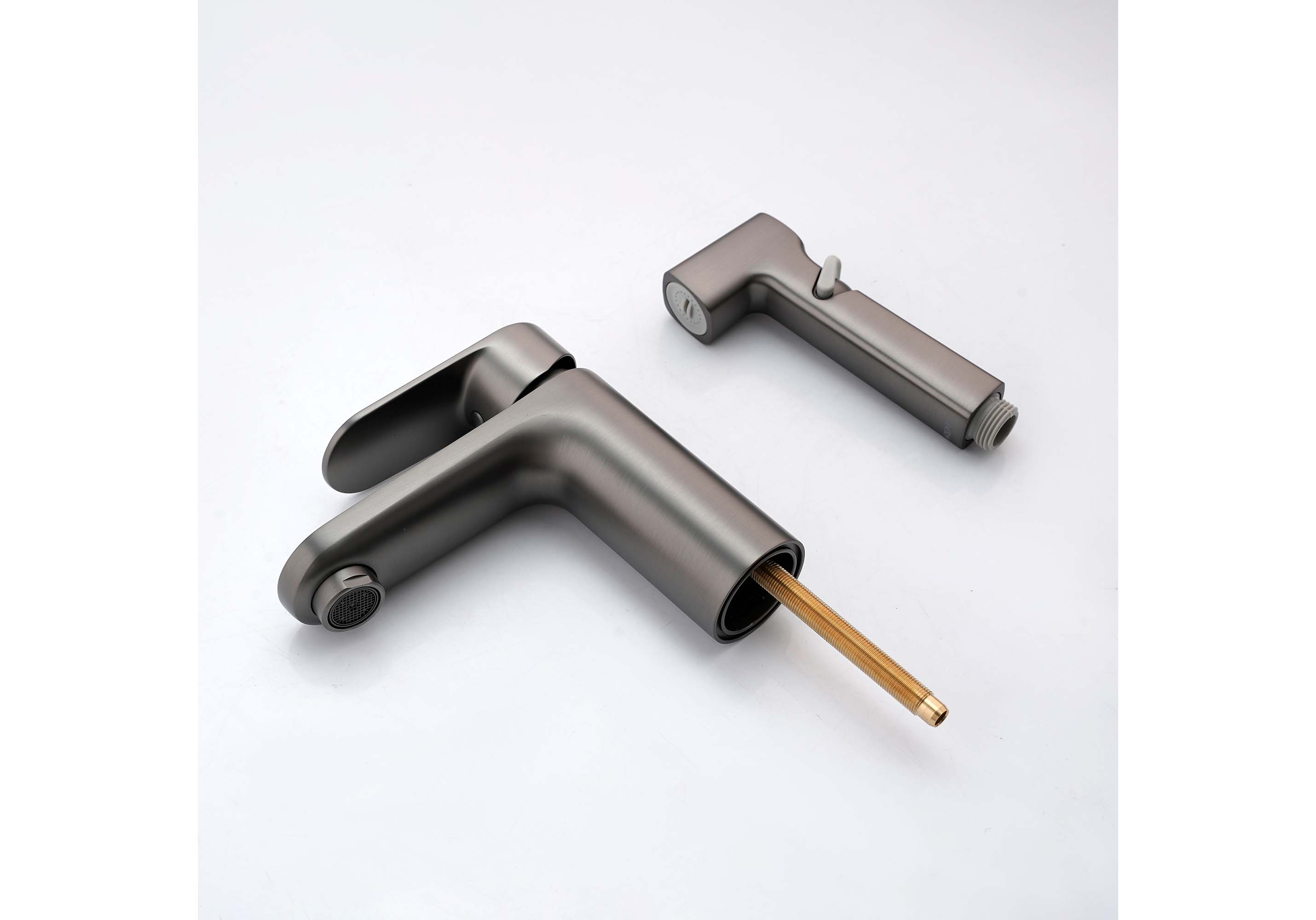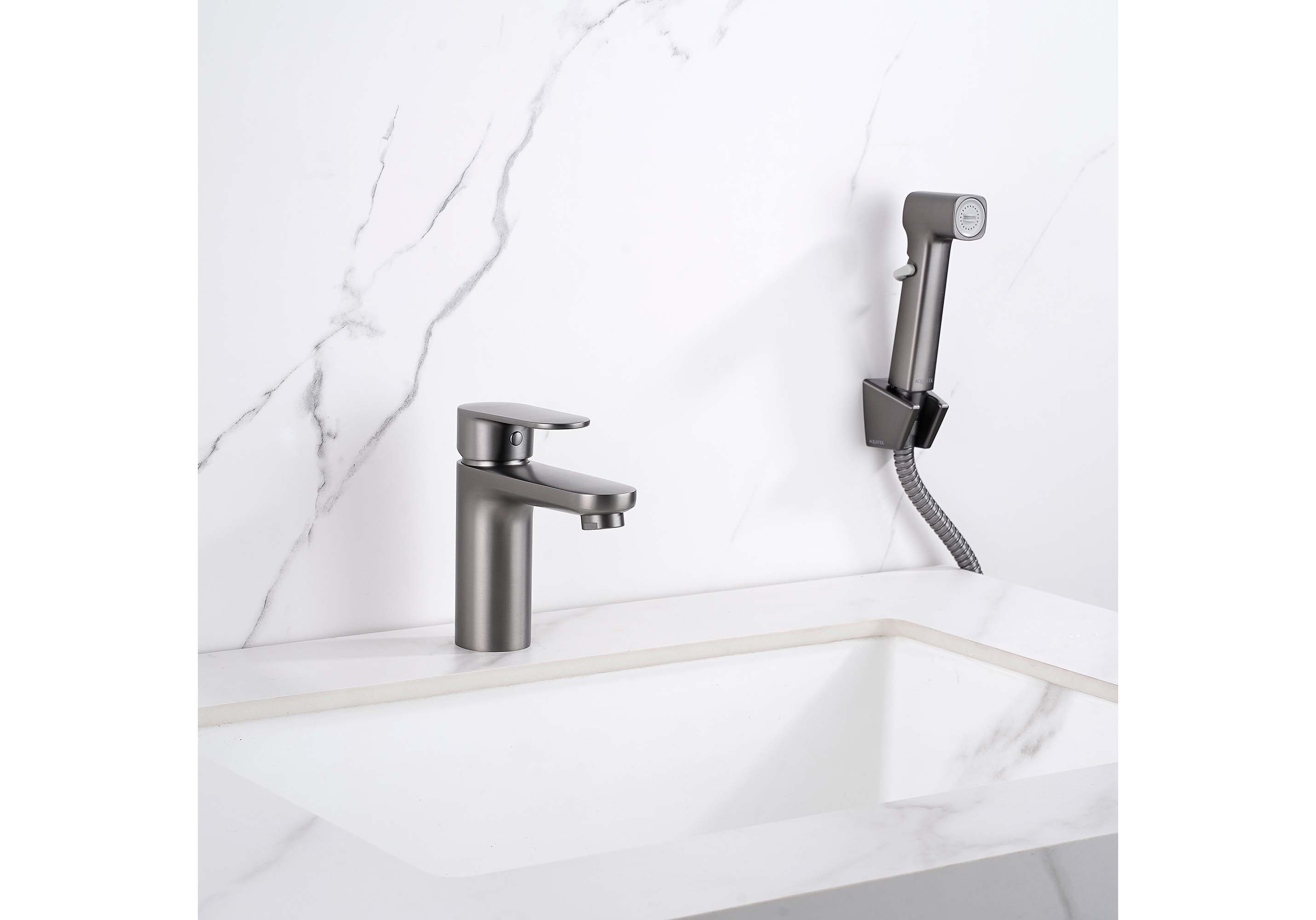 Смеситель для раковины с гигиеническим душем Акватек Ника оружейная сталь AQ1812BGM