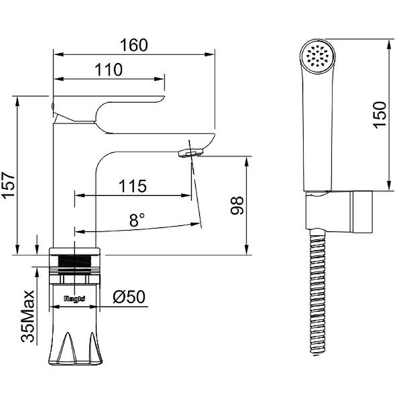 Смеситель для раковины с гигиеническим душем Raglo R03.12 хром