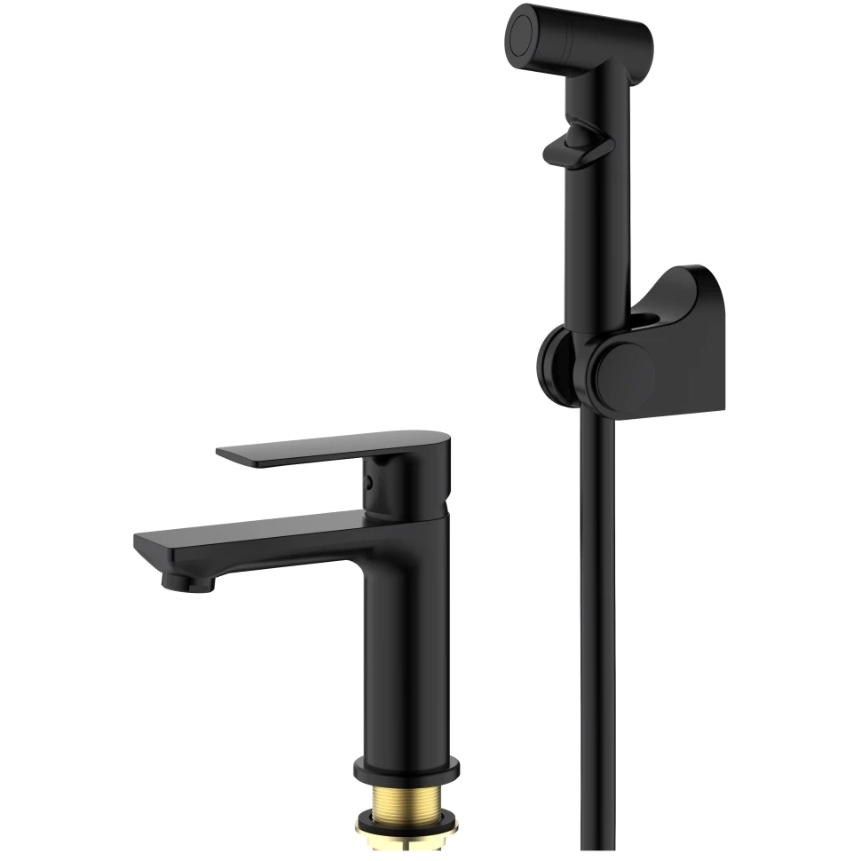 Смеситель для раковины с гигиеническим душем Splenka S05.12.06 черный матовый