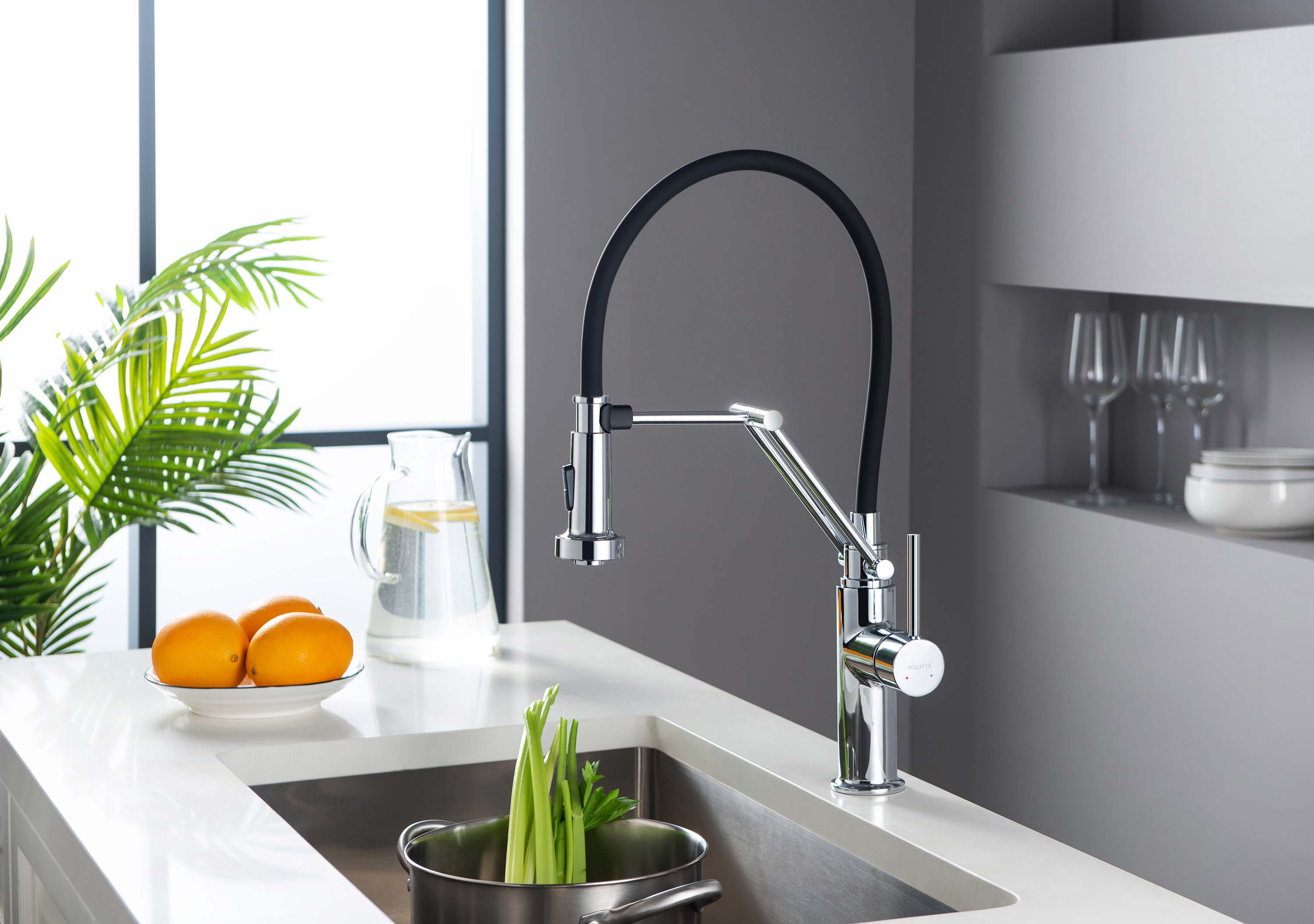 - Профессиональный смеситель для кухни 2 jet Акватек Европа хром AQ1388CR