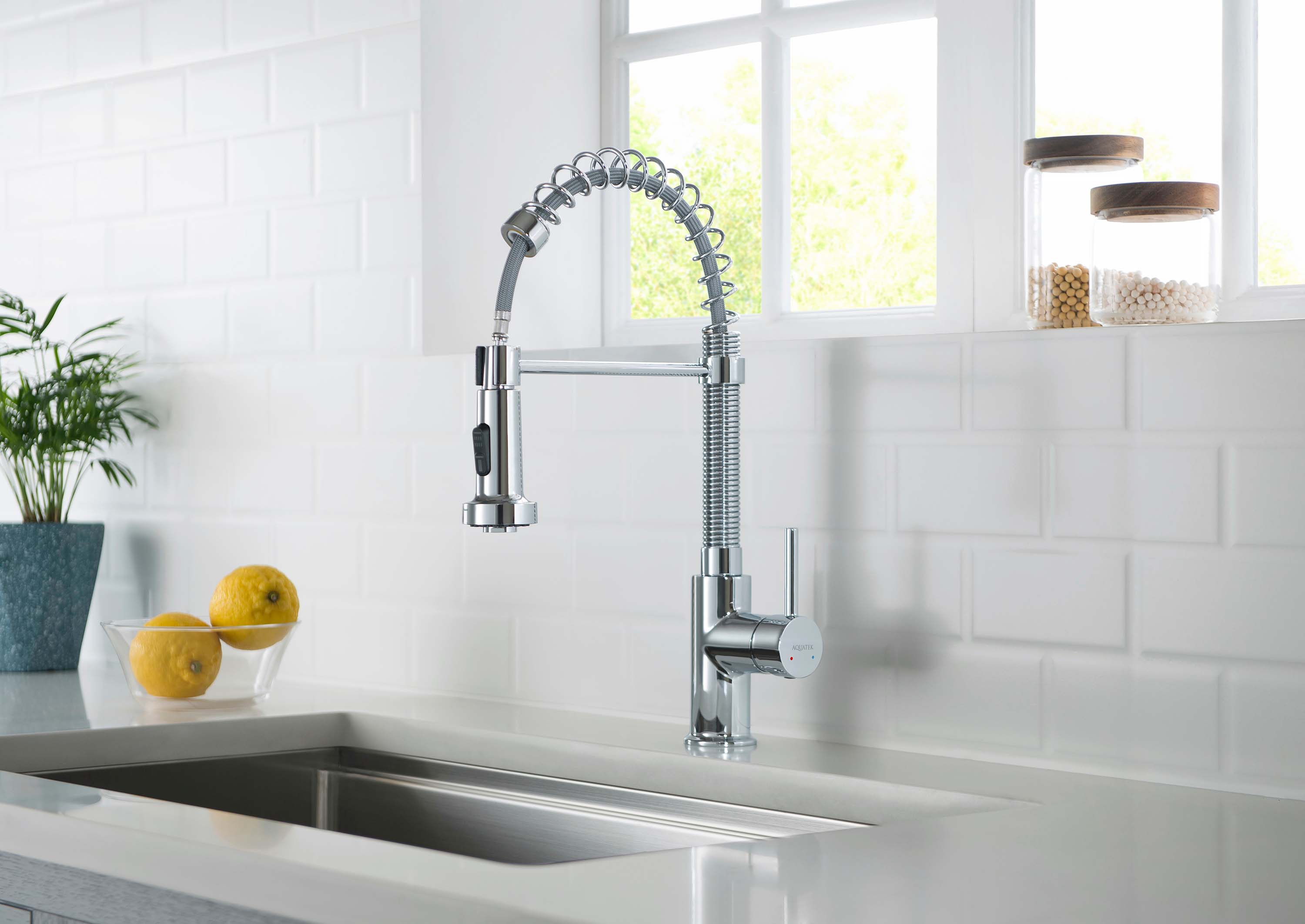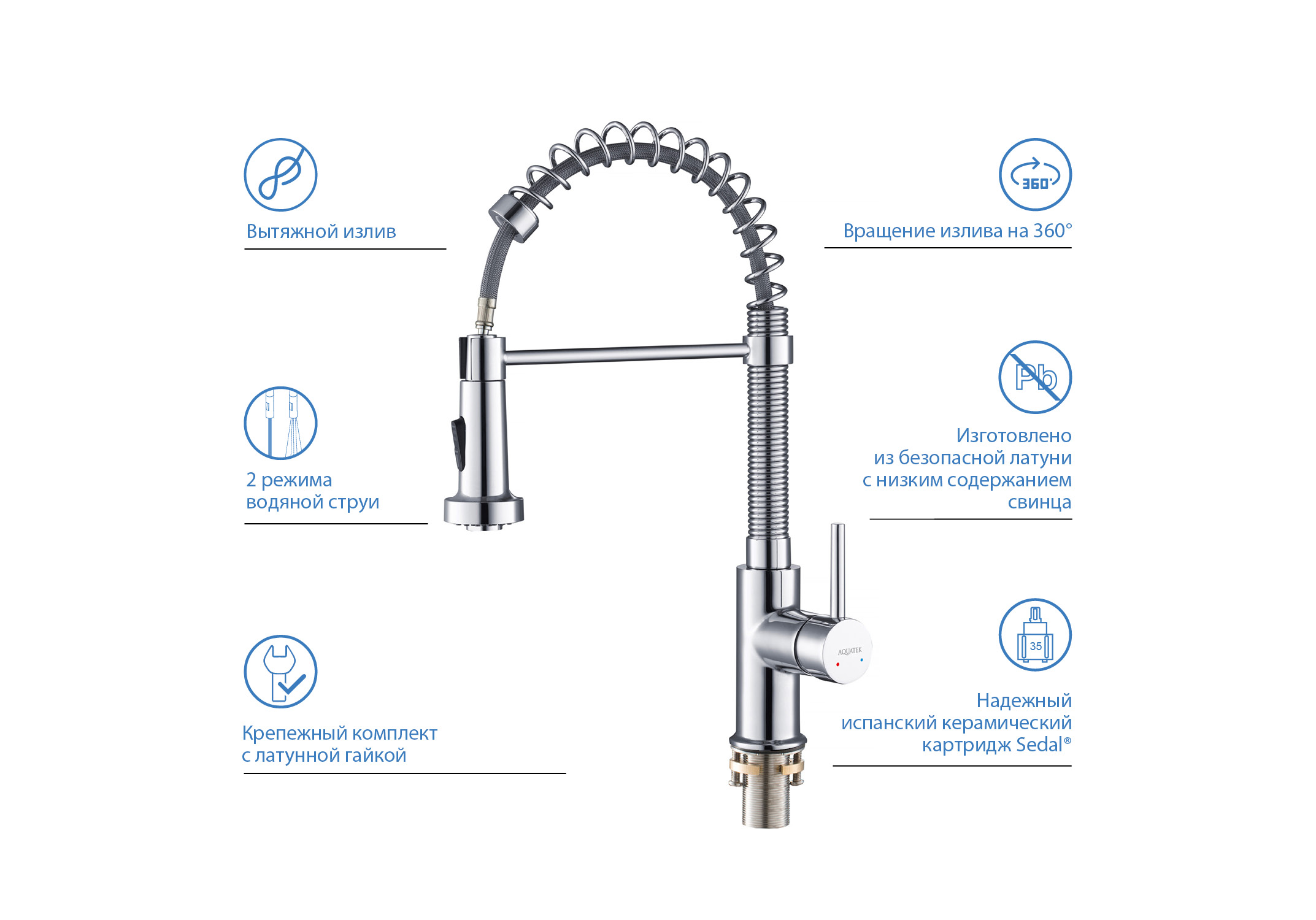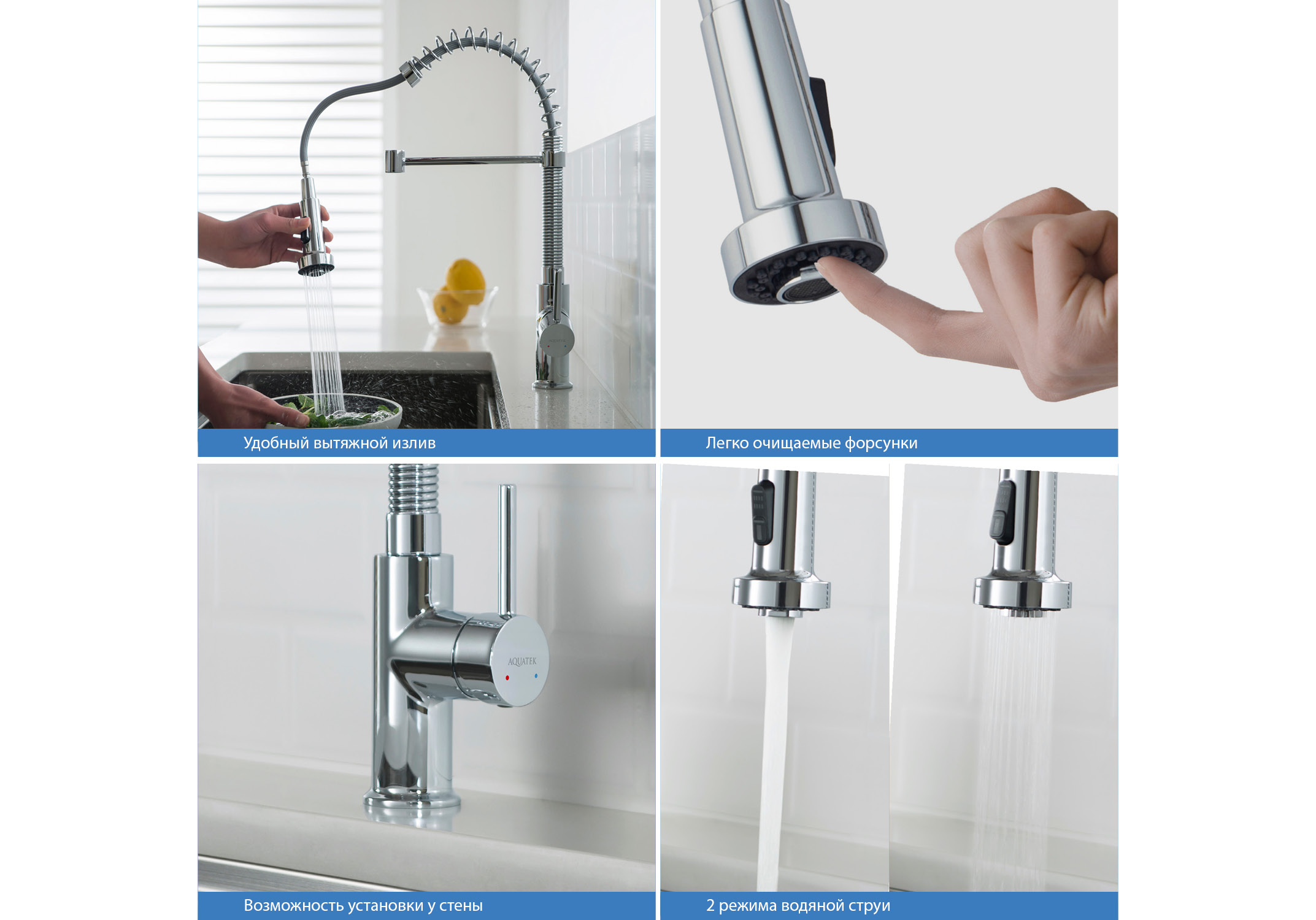 - Смеситель для кухни 2 jet с вытяжным изливом Акватек Европа хром AQ1387CR