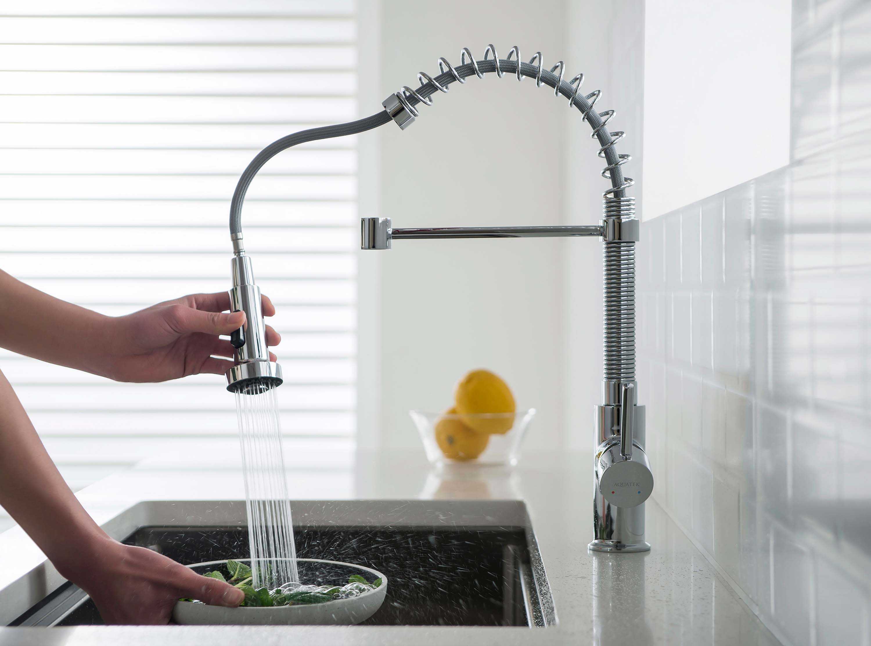 Второй режим — это экономичная душевая струя, которая идеально подходит для мытья фруктов, овощей, рыбы и мяса. Мягкая струя бережно и эффективно очищает продукты и другие предметы.