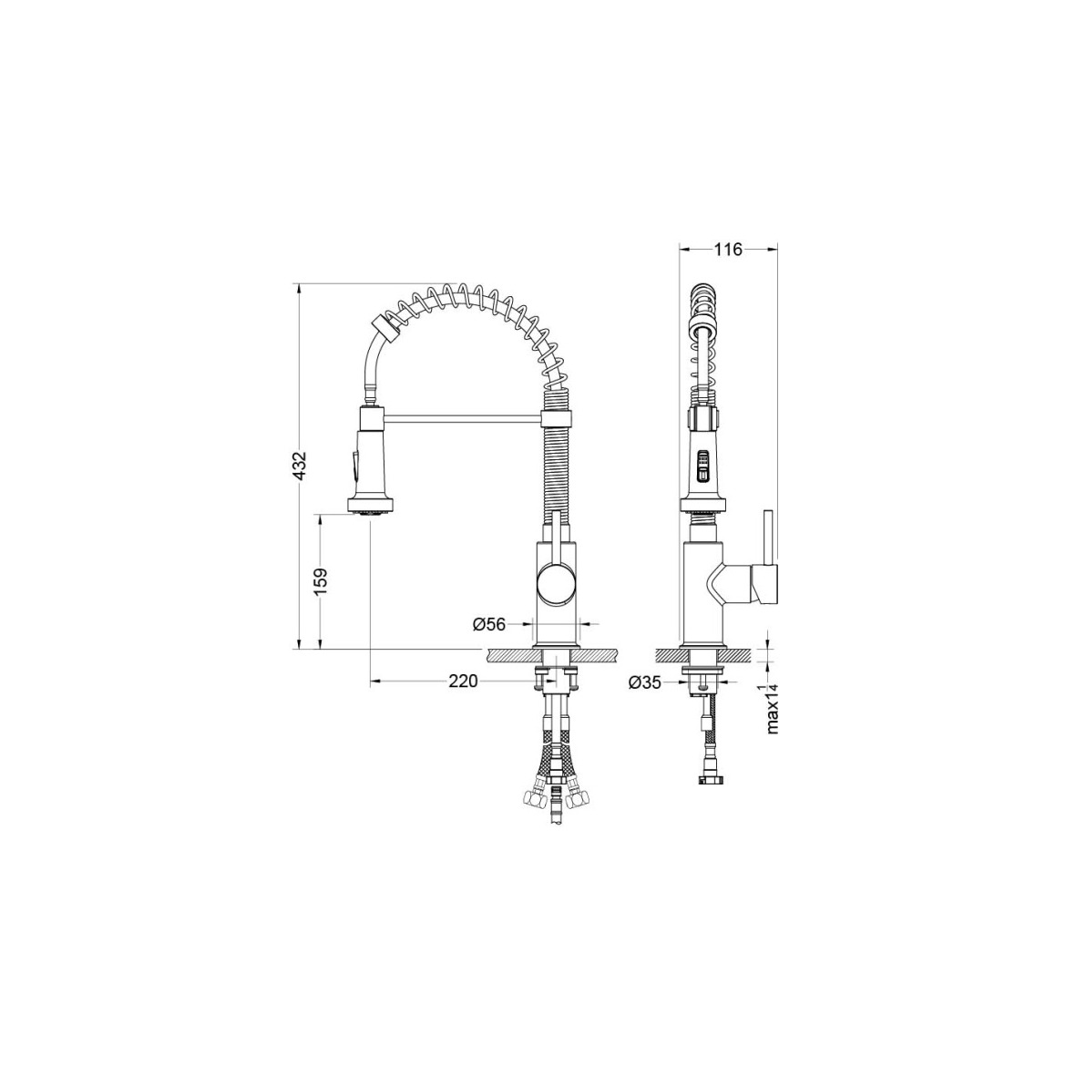 • оснащен гибким поворотным пружинным изливом 160°, удобен для мытья крупных предметов