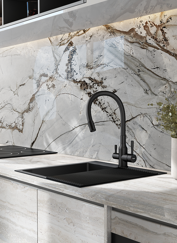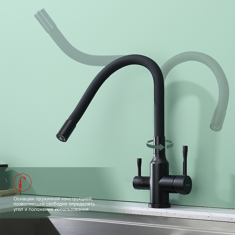 Смеситель для кухни под фильтр с гибким изливом Raglo R81.64.06 черный матовый
