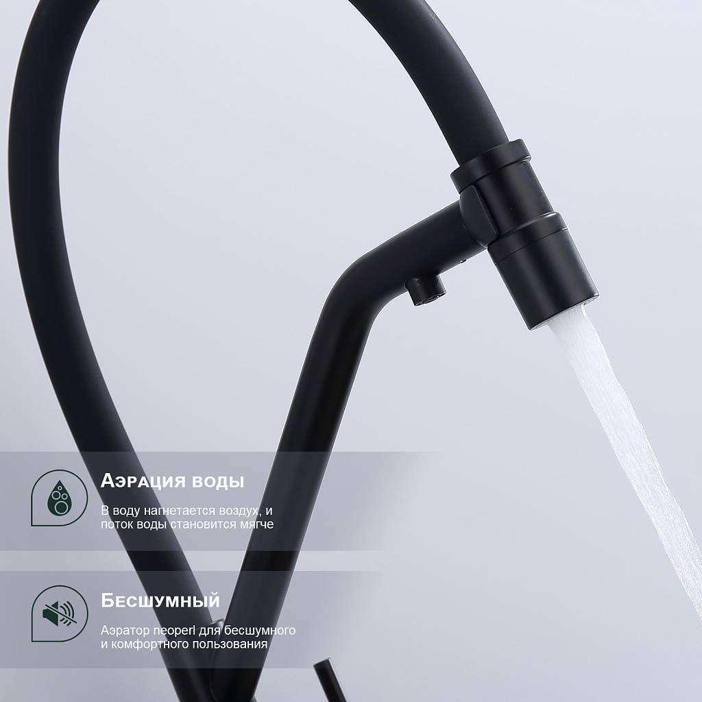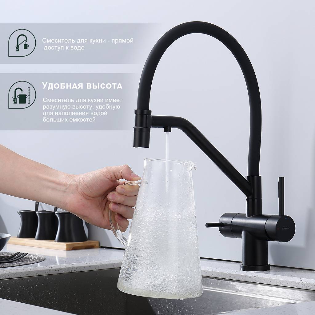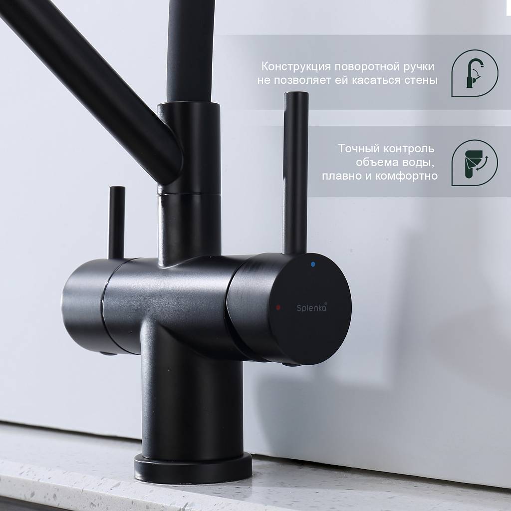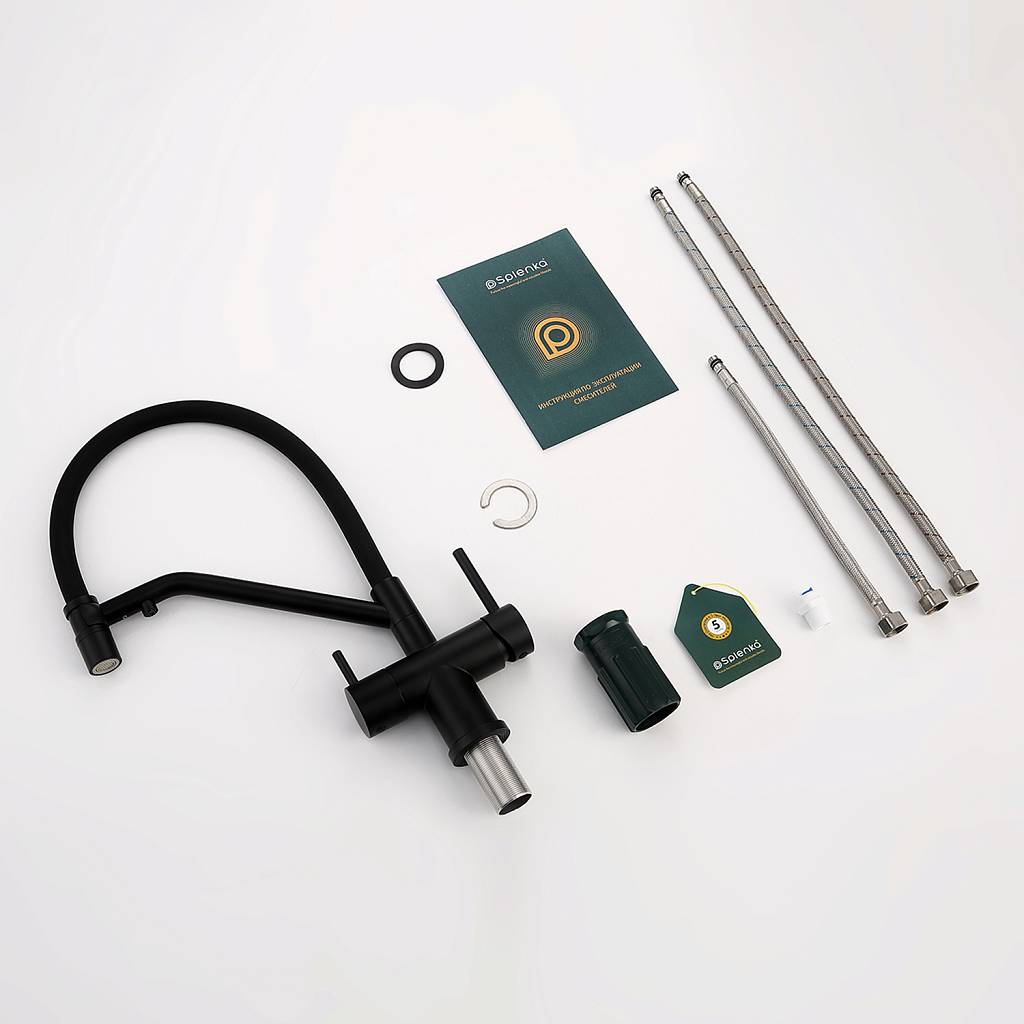 Смеситель для кухни под фильтр с гибким изливом Splenka S70.62.06 черный матовый