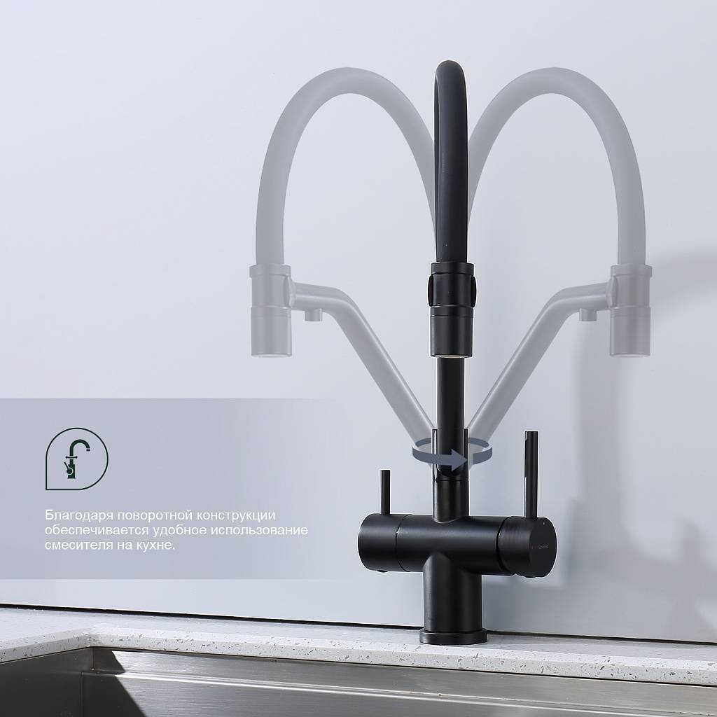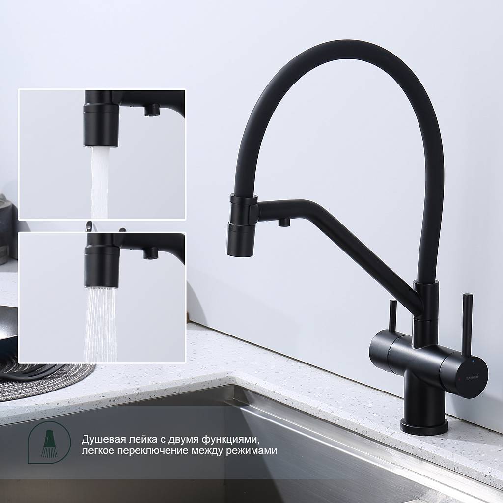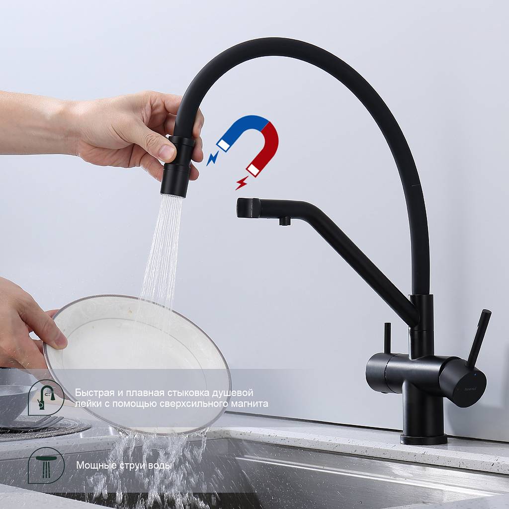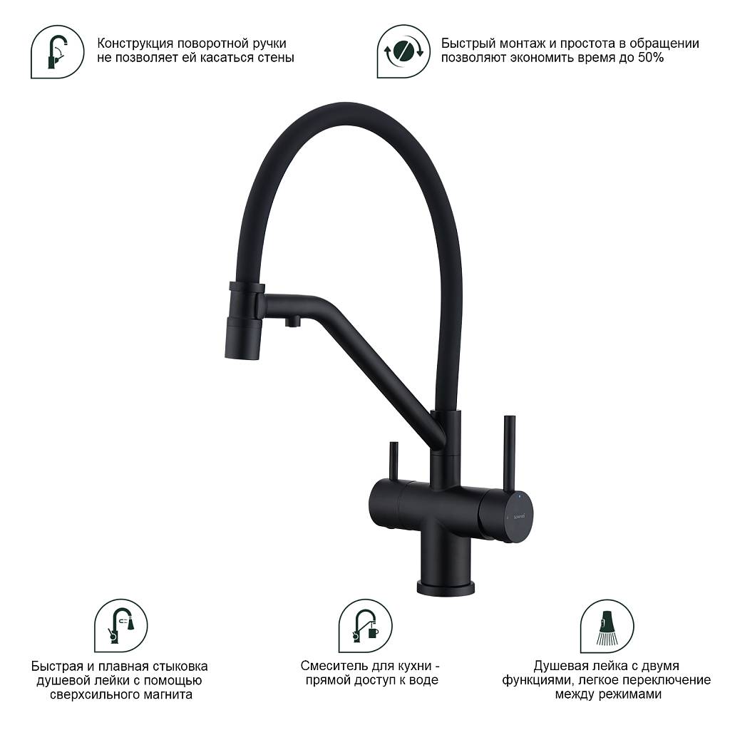 Смеситель для кухни под фильтр с гибким изливом Splenka S70.62.06 черный матовый