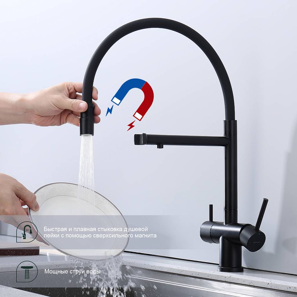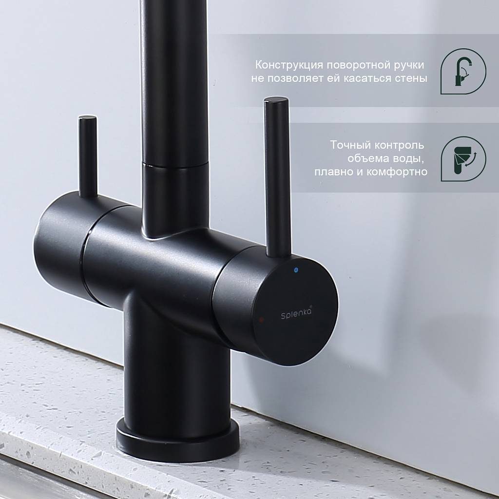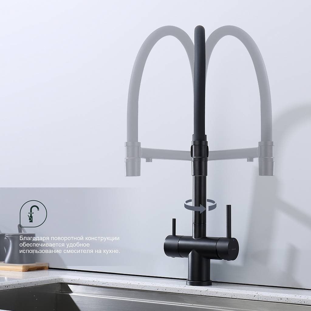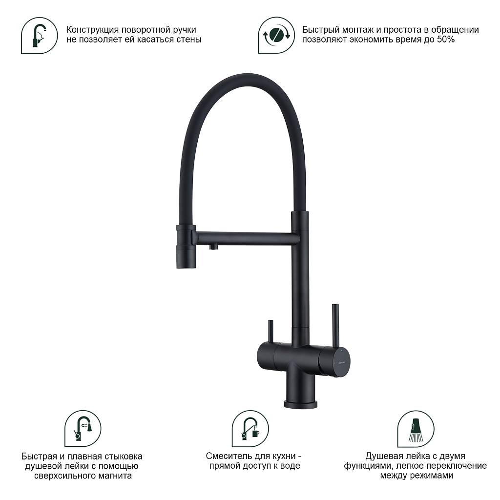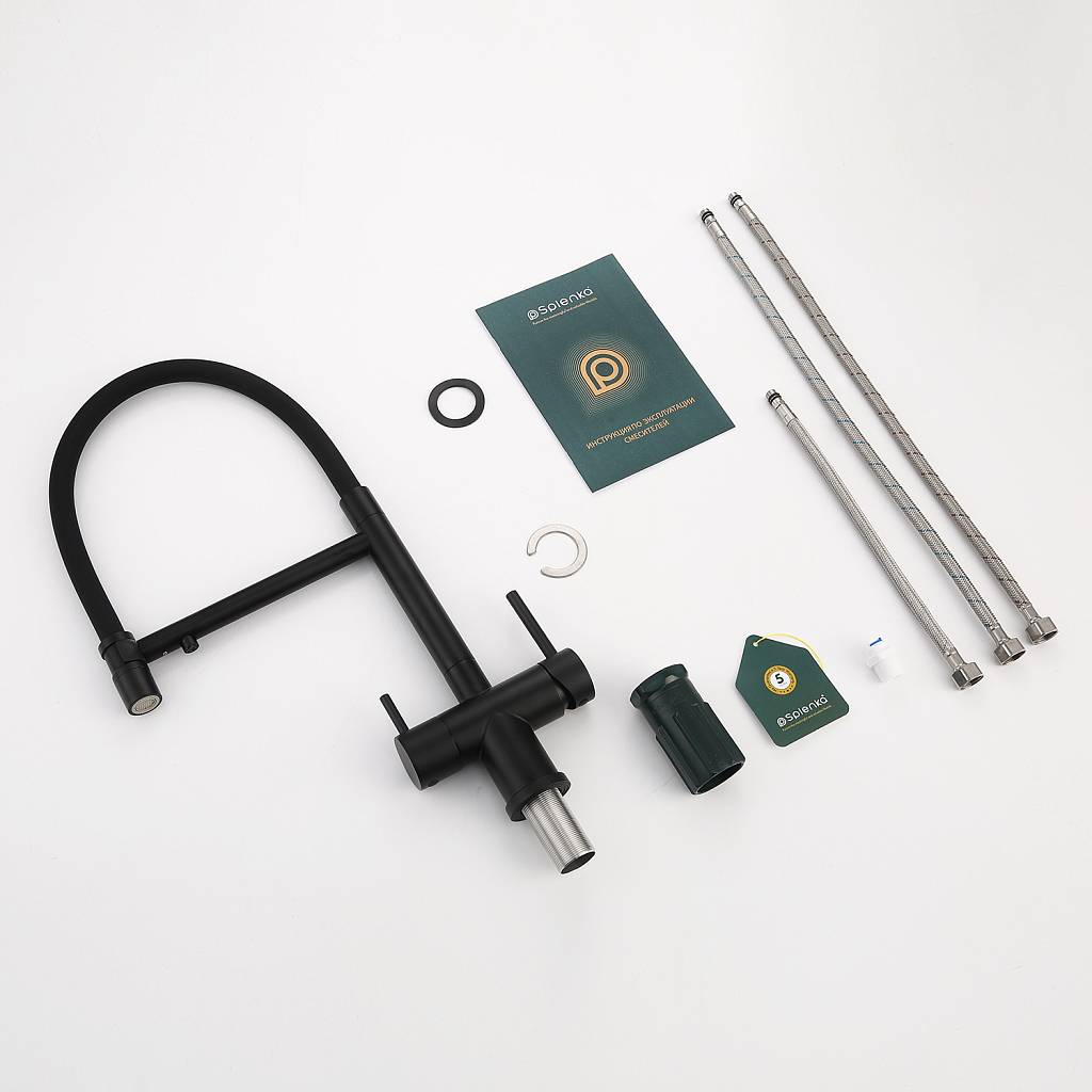 Смеситель для кухни под фильтр с гибким изливом Splenka S70.63.06 черный матовый