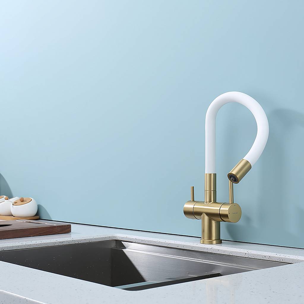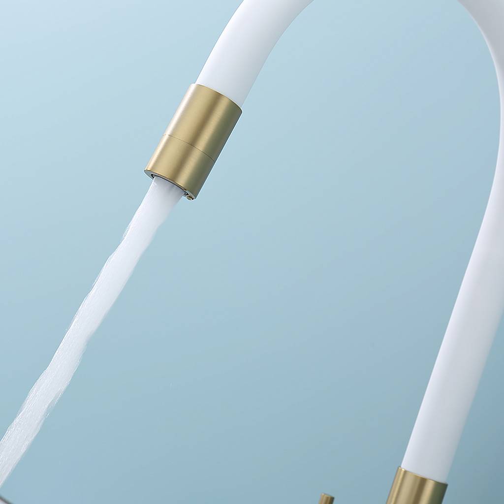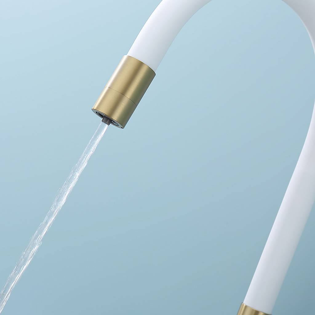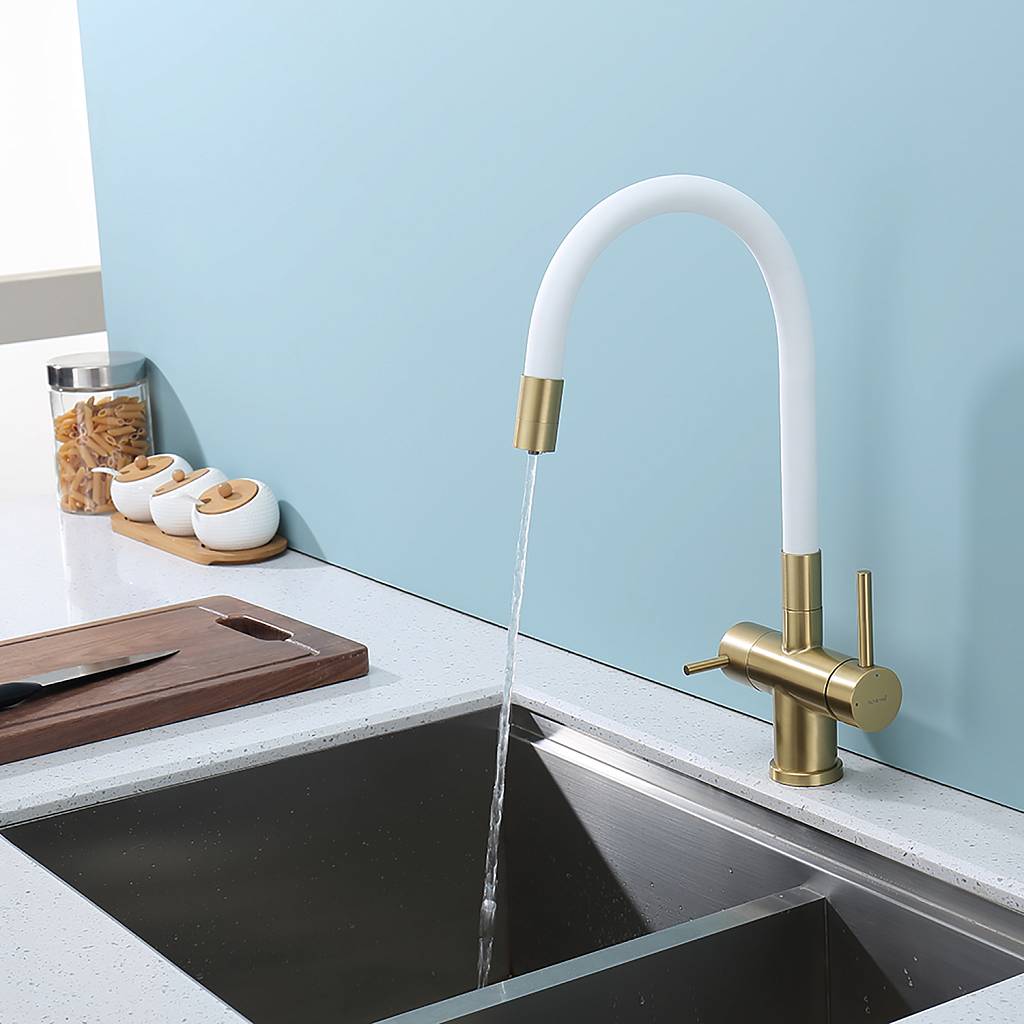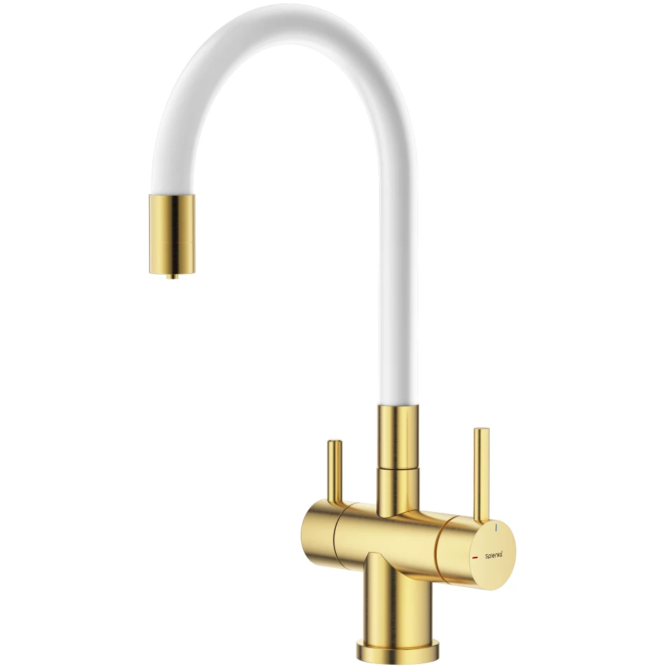 Смеситель для кухни под фильтр с гибким изливом Splenka S70.64.03 золотой сатин/белый
