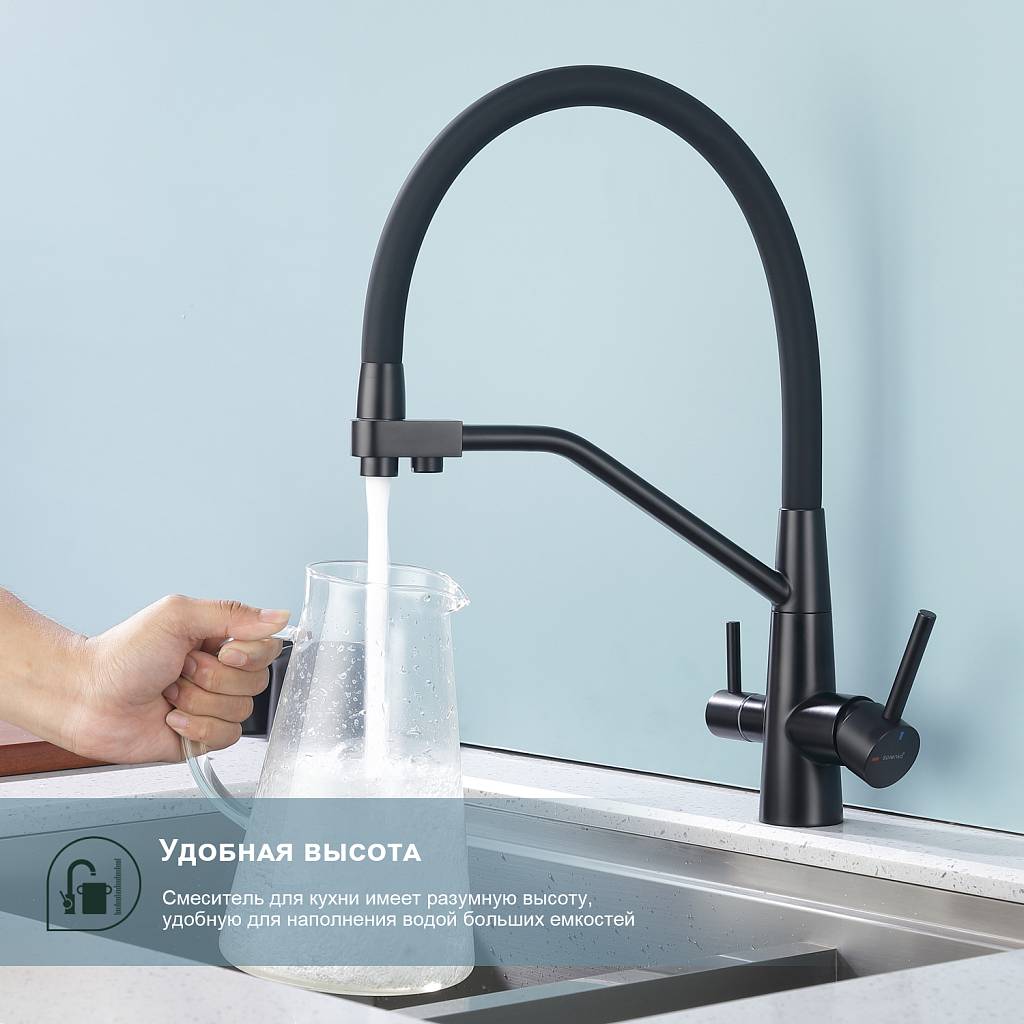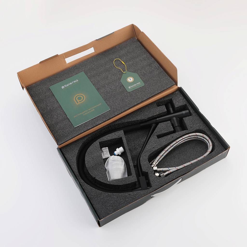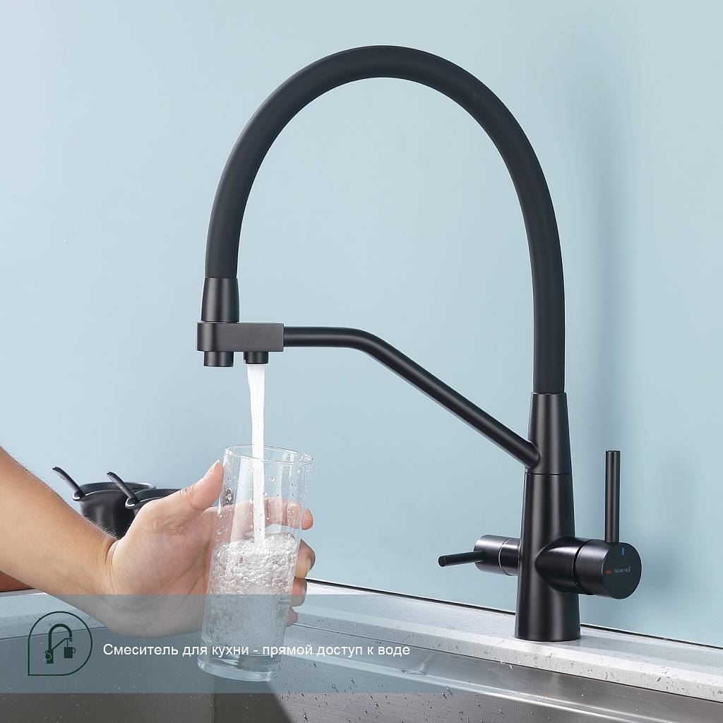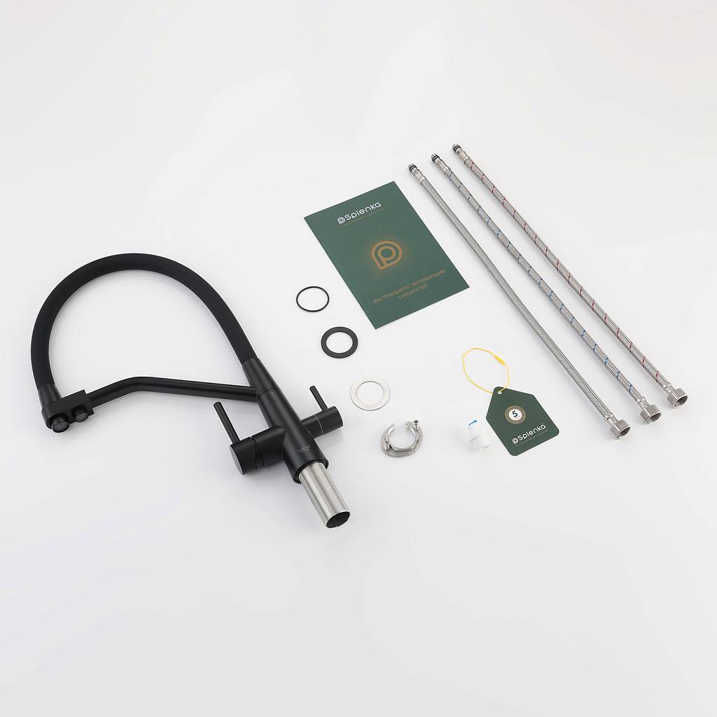 Смеситель для кухни под фильтр с гибким изливом Splenka S71.62.06 черный матовый