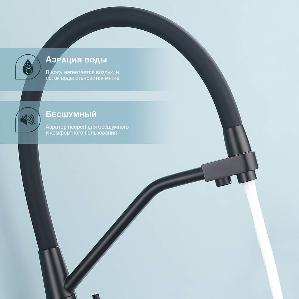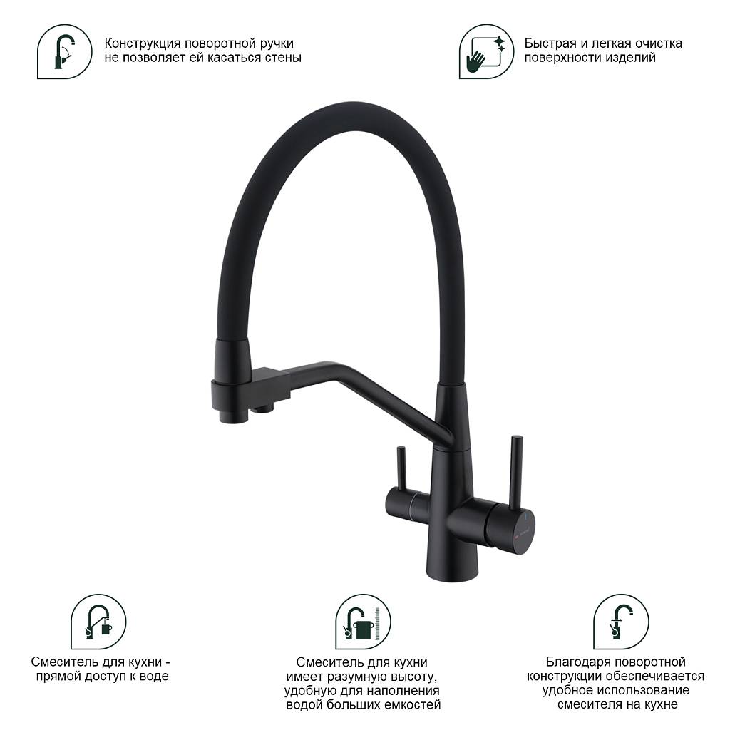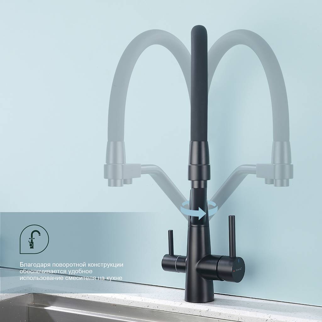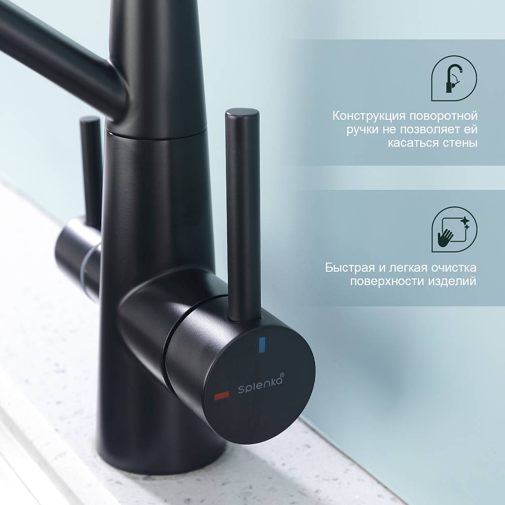 Смеситель для кухни под фильтр с гибким изливом Splenka S71.62.06 черный матовый