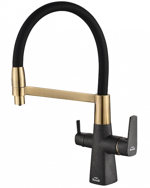 - Смеситель для кухни под фильтр с гибким изливом ZorG Steel Hammer SH 818-6 BLACK BR