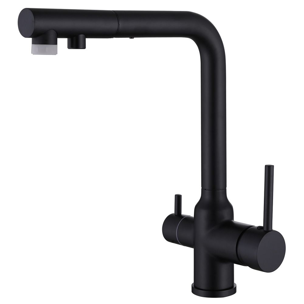 Смеситель для кухни под фильтр с выдвижной лейкой ABBER Emotion черный матовый AF8814B