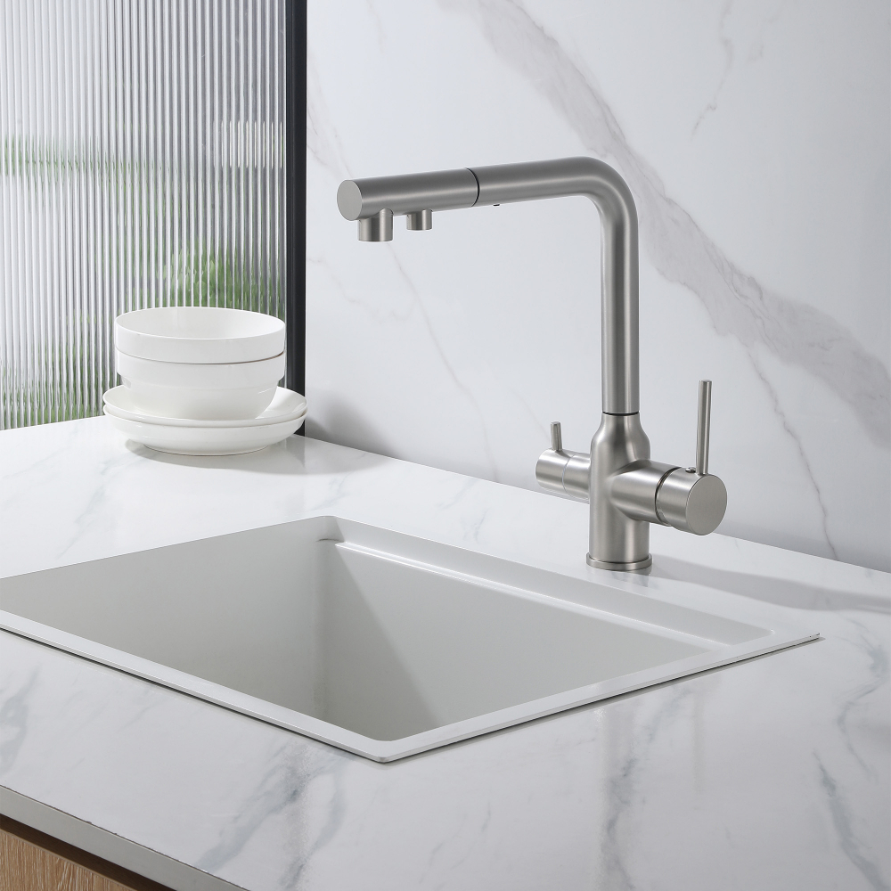 Смеситель для кухни под фильтр с выдвижной лейкой ABBER Emotion сатин AF8814SP