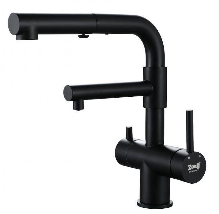Все элементы смесителя выполнены из пищевой нержавеющей стали. Поверхность смесителя имеет приятный графитовый оттенок и идеально сочетается с кухонными мойками ZORG INOX PVD в цвете GRAFIT. Такая поверхность препятствует отложению налета от воды и улучшает гигиенические свойства материала. Технология комбинированного смесителя Зорг позволяет получать водопроводную и очищенную воду из одного смесителя. Благодаря "двойному каналу" в изливе смесителя ZORG SZR-3216 GRAFIT, вода подается не смешиваясь по разным каналам. Рычаг управления водопроводной водой справа от излива, управление питьевой водой - слева.