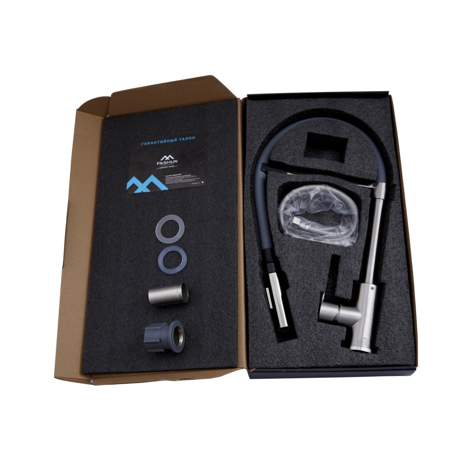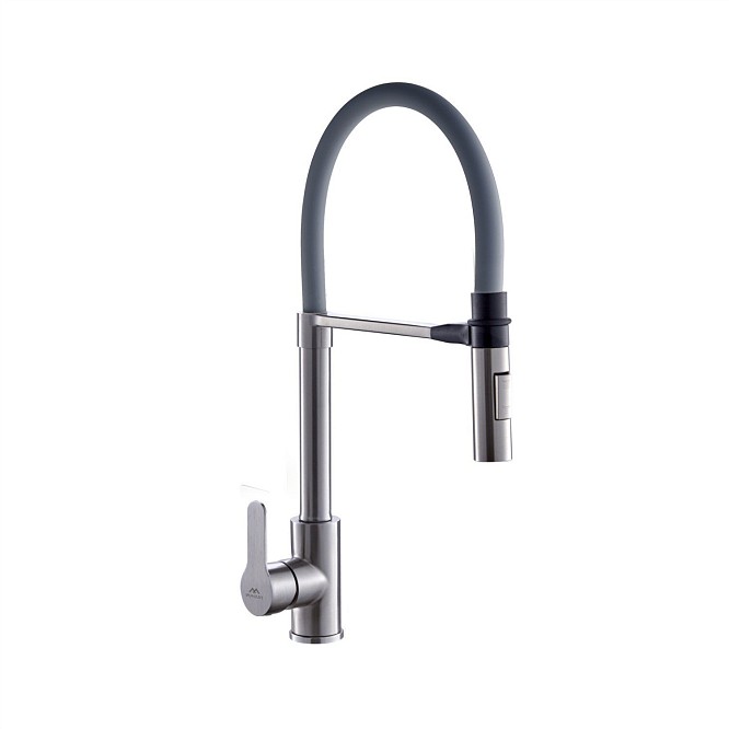 Смеситель для кухни с гибким изливом Fashun A54511-12 серый/ сатин