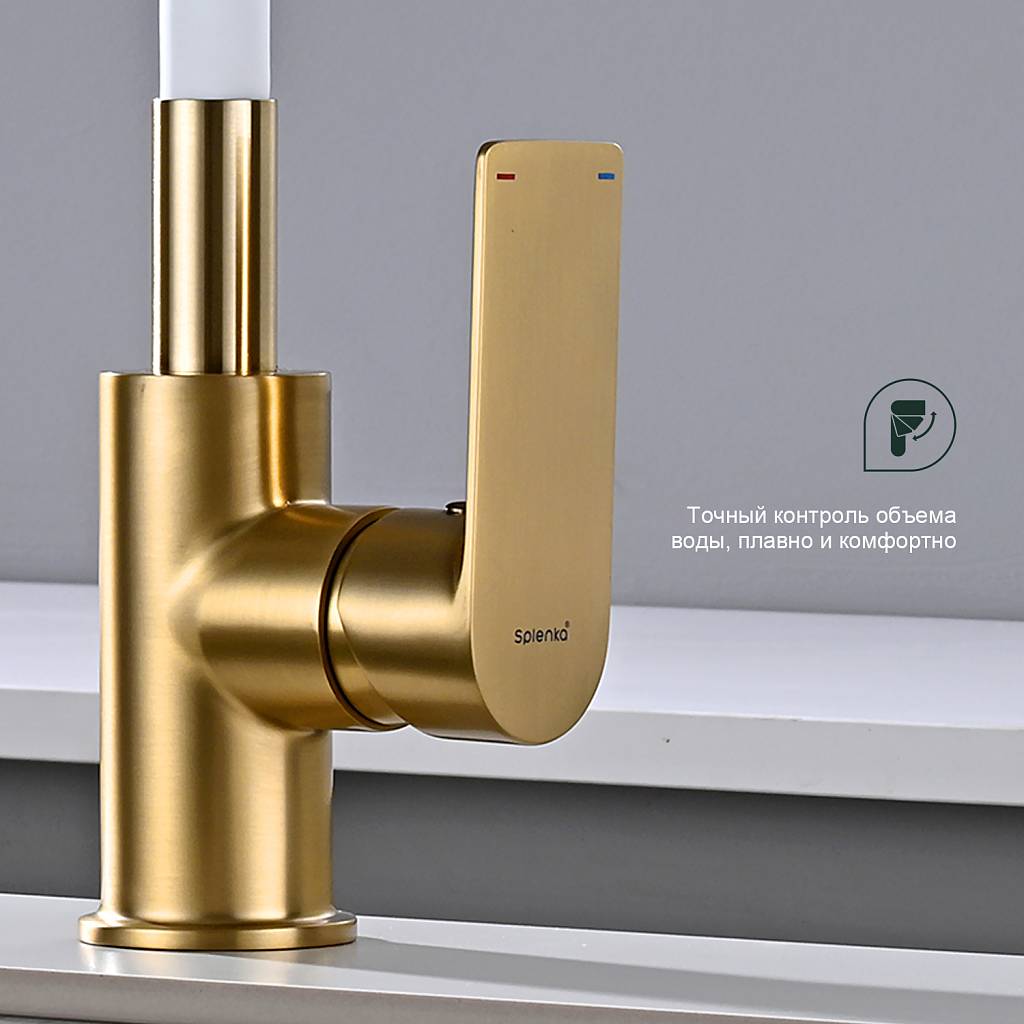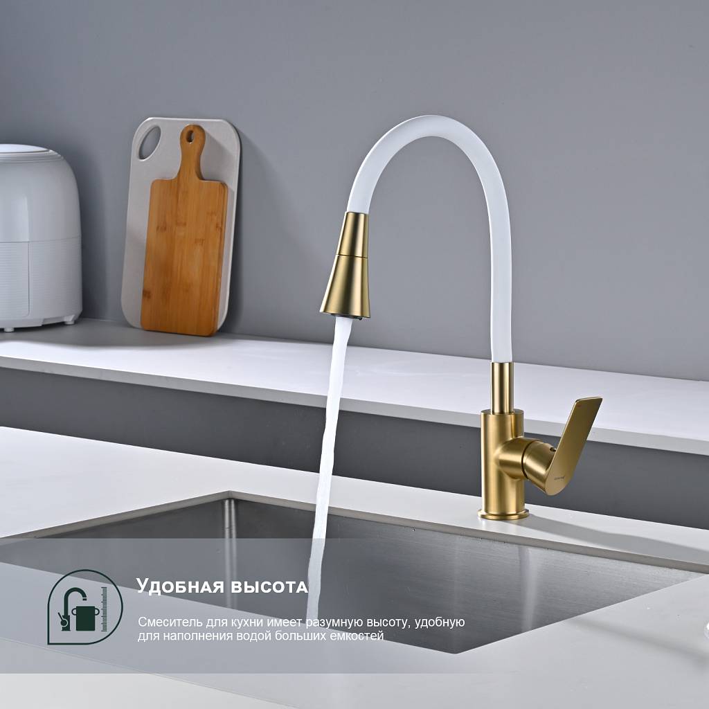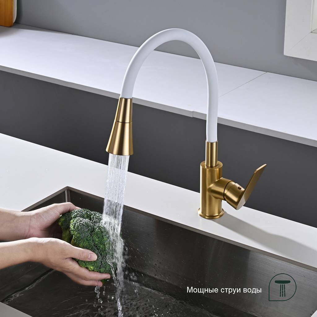 Смеситель для кухни с гибким изливом Splenka S05.43.03 золотой сатин/белый